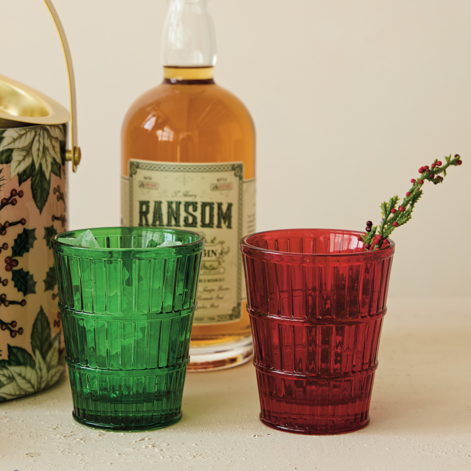 8 oz. Pressed Drinking Glass/Votive Holder, 2 Colors