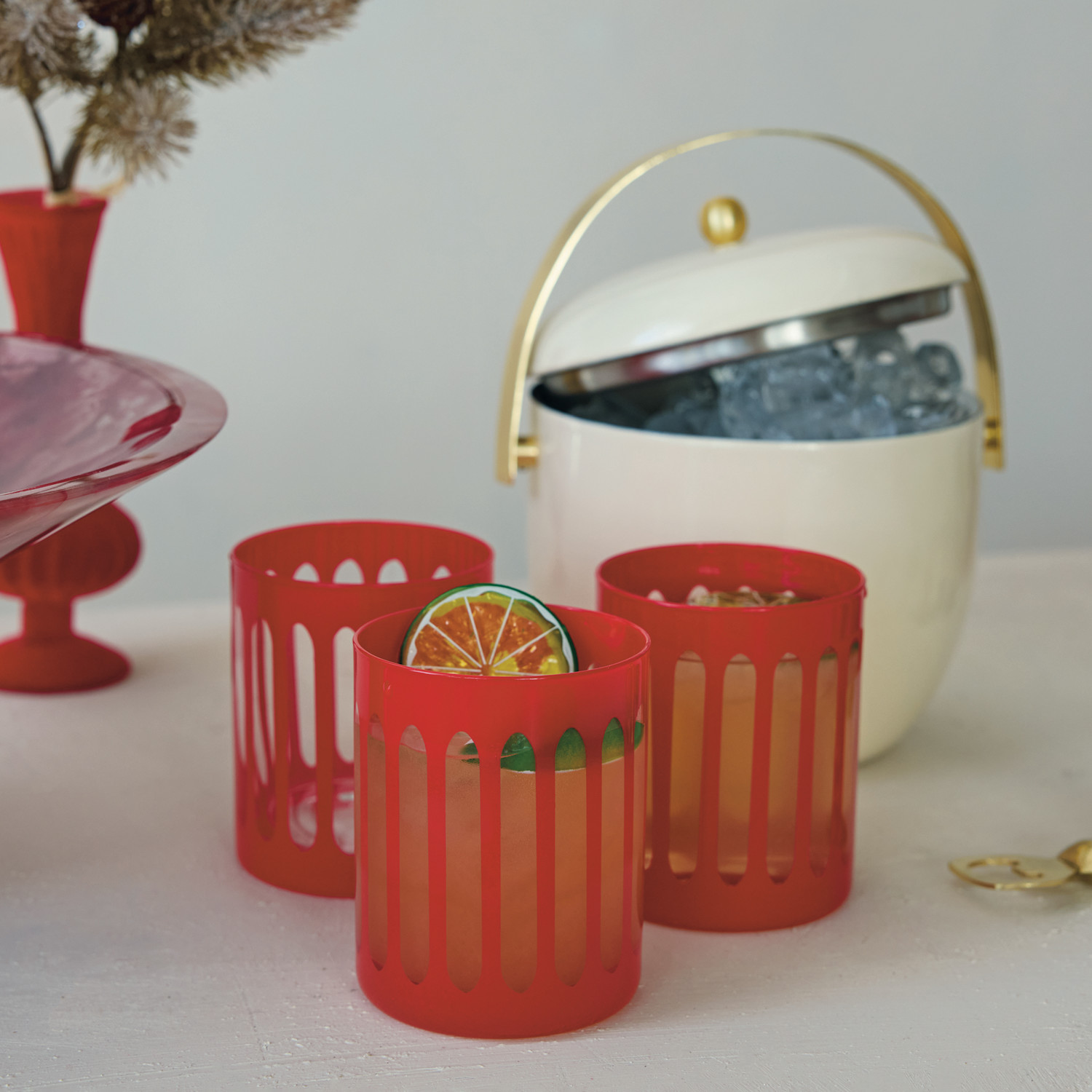 12 oz. Striped Drinking Glass/Votive Holder, Red