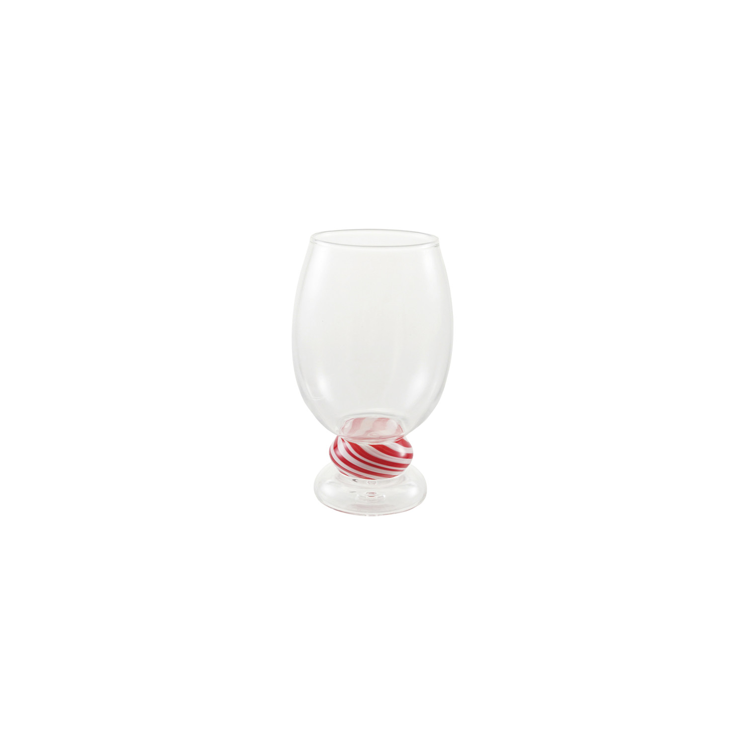 Catalog Name: 3-1/4" Round x 5-1/2"H 14 oz. Blown Drinking Glass w/ Candy Striped Stem, Red & White