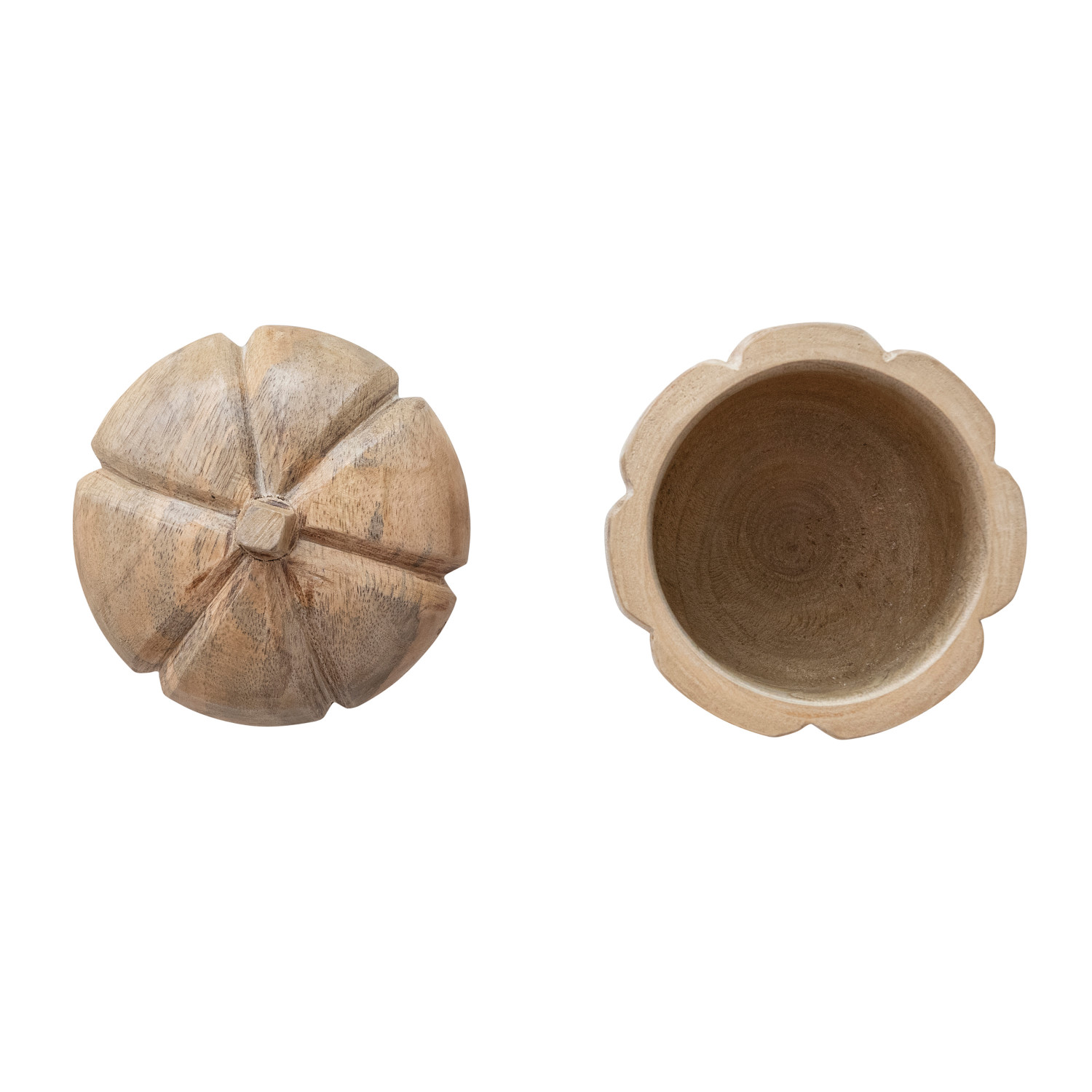 Catalog Name: 4-1/2" Round x 6-1/2"H Hand-Carved Mango Wood Pumpkin Shaped Container w/ Lid, Natural