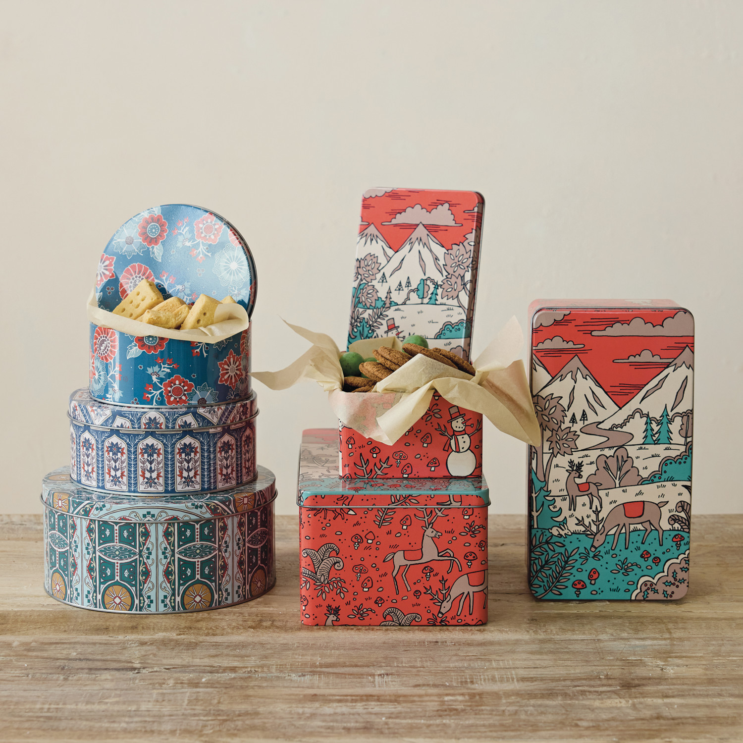 Tins with Lids & Patterns, Set of 3 ©