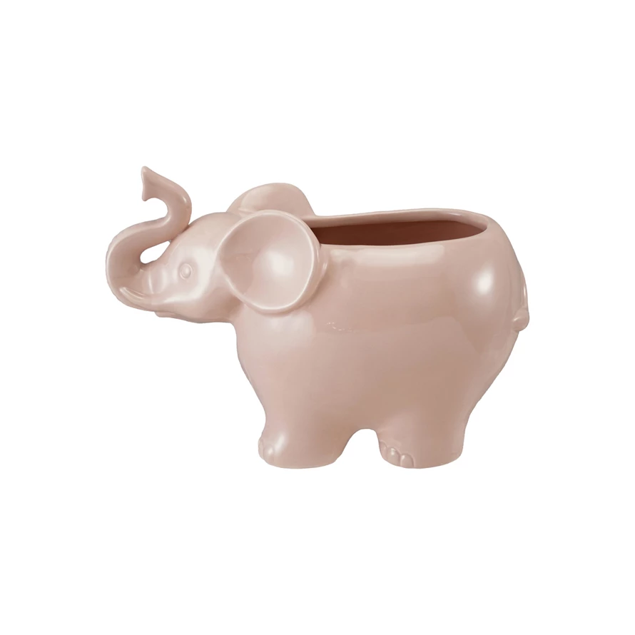 Catalog Name: 12-3/4"L x 7"W x 9"H 4 Quart Stoneware Elephant Shaped Container, Pink