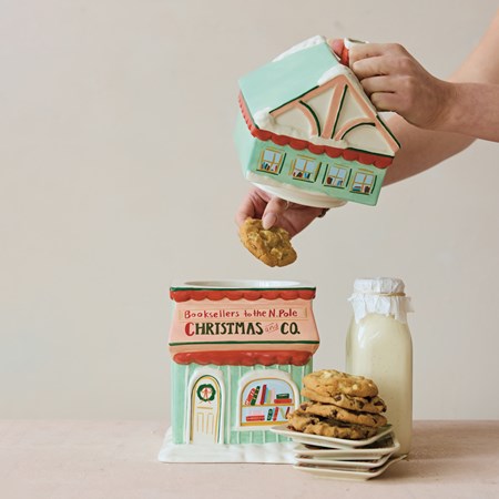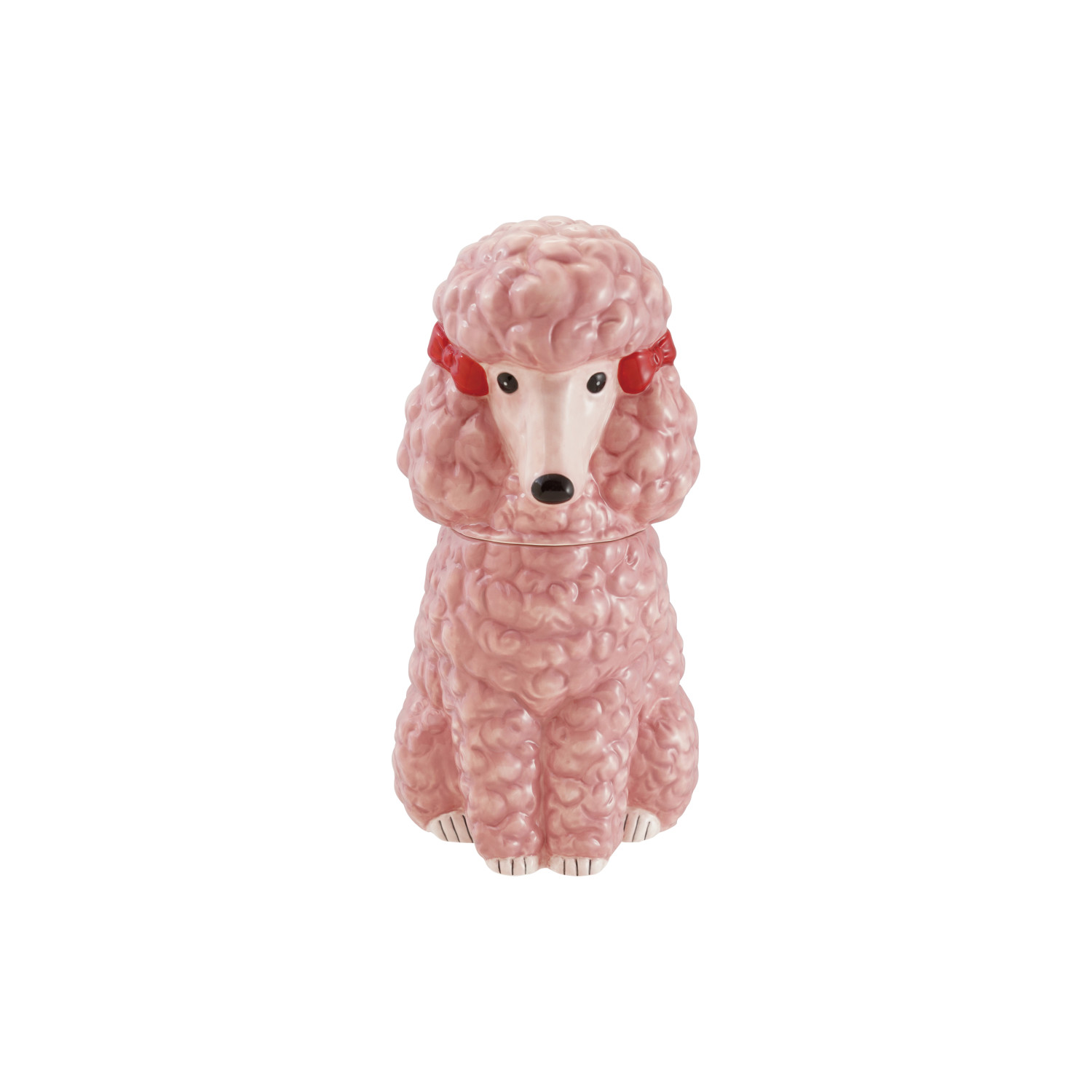 Catalog Name: 8-1/4"L x 6"W x 11-3/4"H Ceramic Poodle Shaped Cookie Jar w/ Bows, Pink, Red & Black