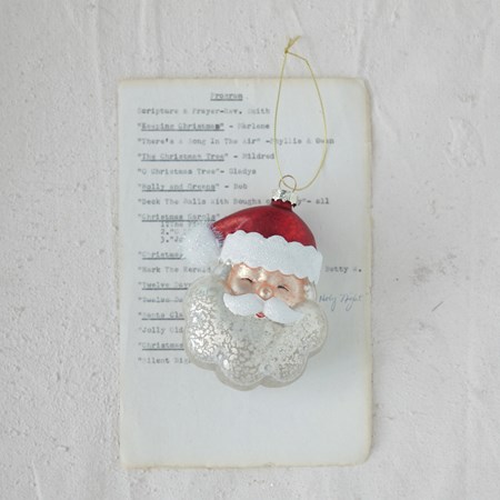 Napkins with Embroidered Santa Image, Natural, Set of 4 Tied with Tape ©