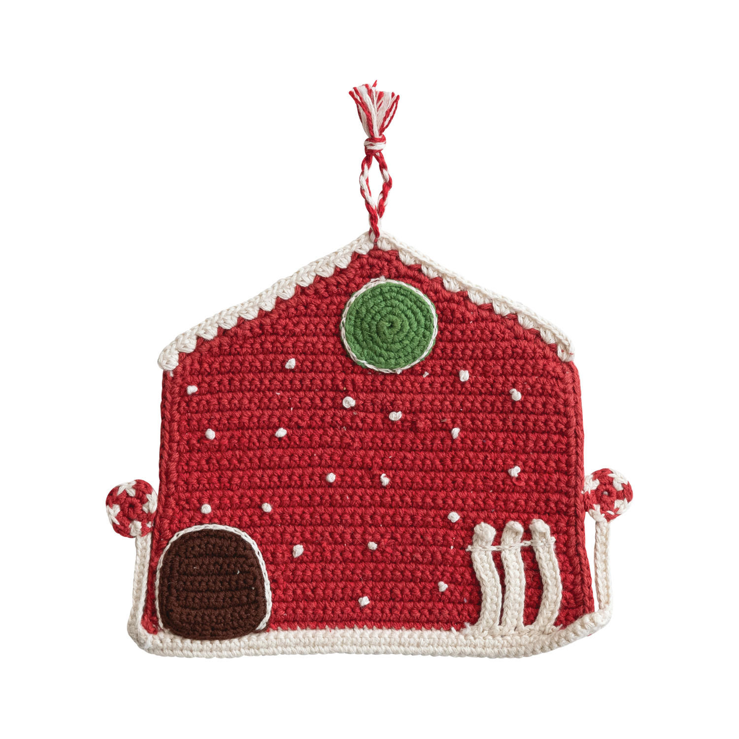 Catalog Name: 8" Square Cotton Crocheted House Shaped Pot Holder, Multi Color