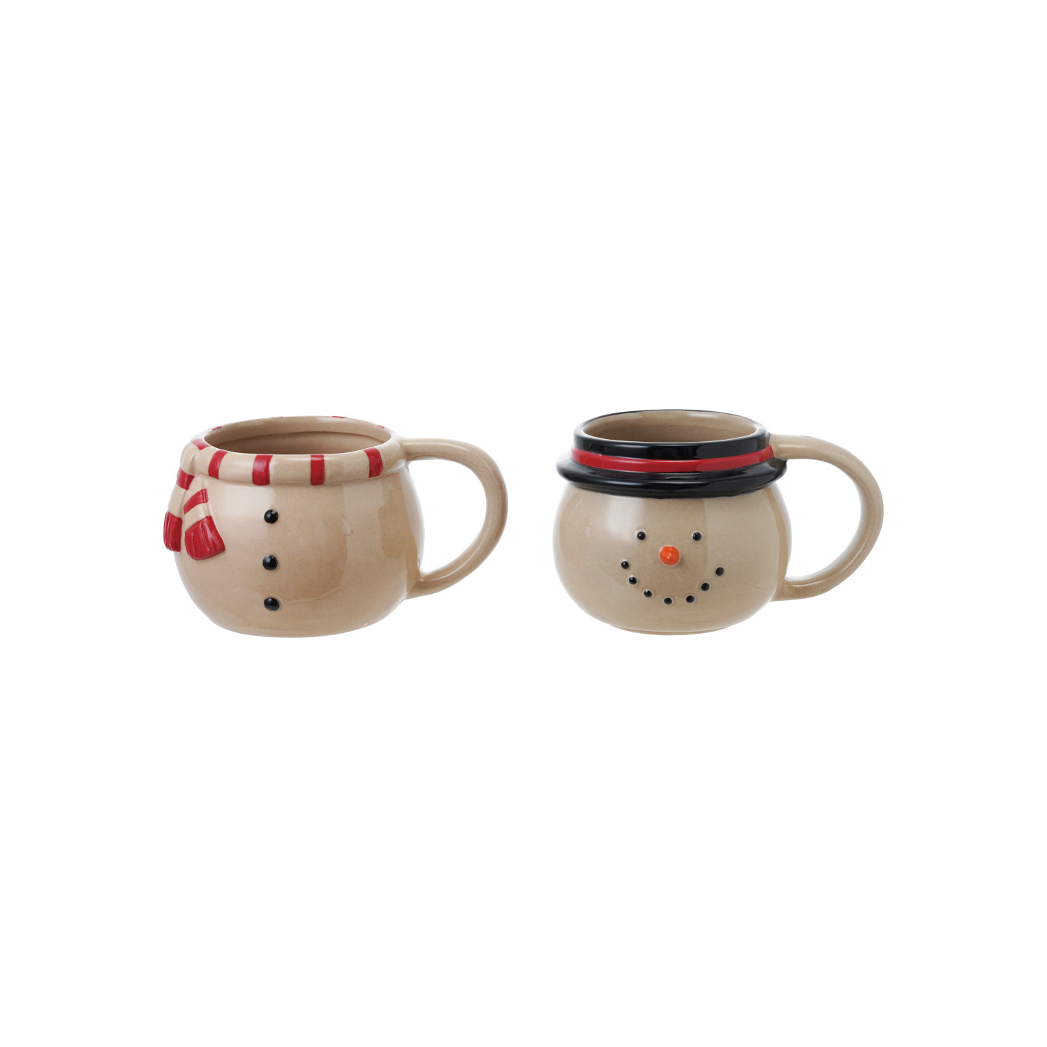 Hand-Painted Stoneware Stackable Snowman Mugs, Set of 2
