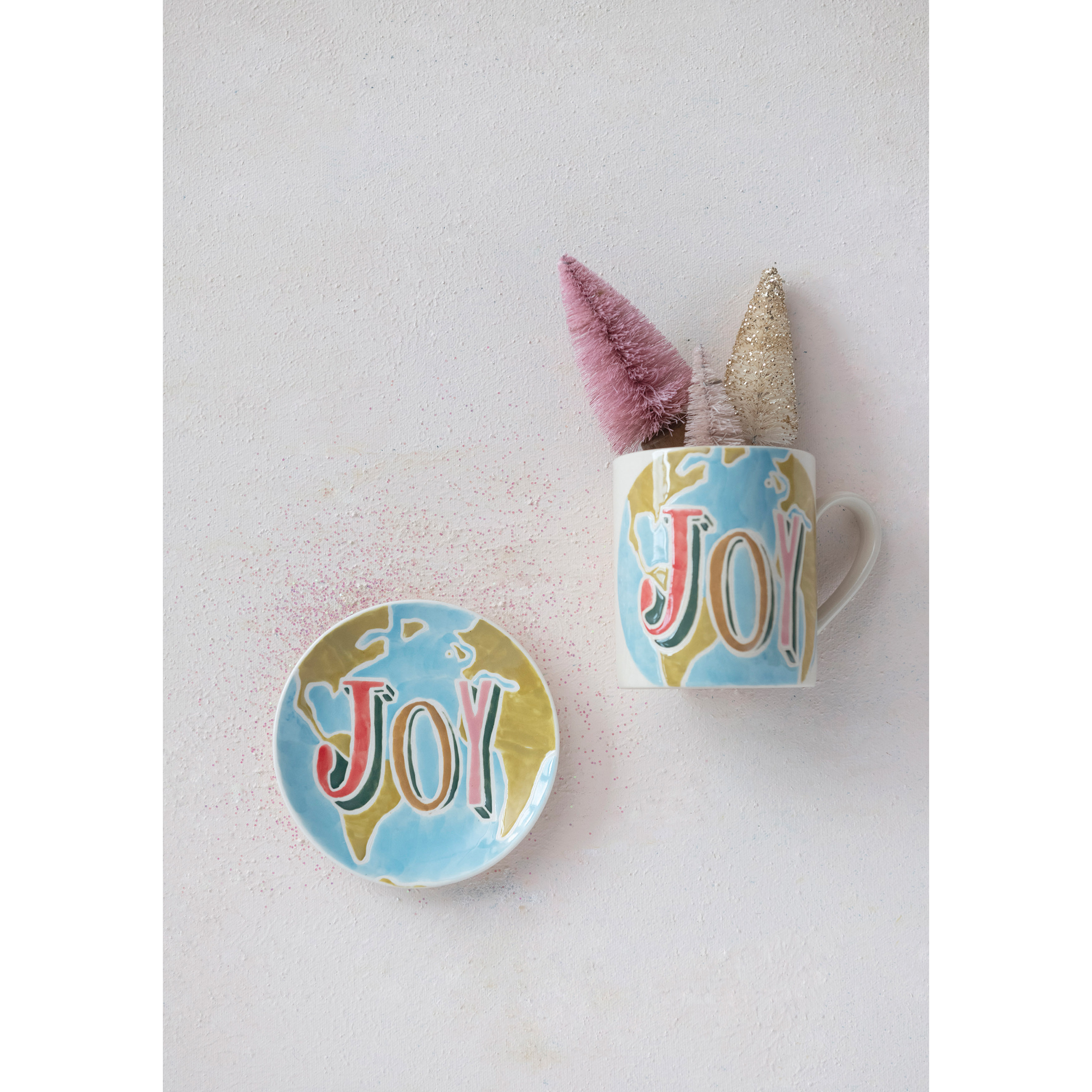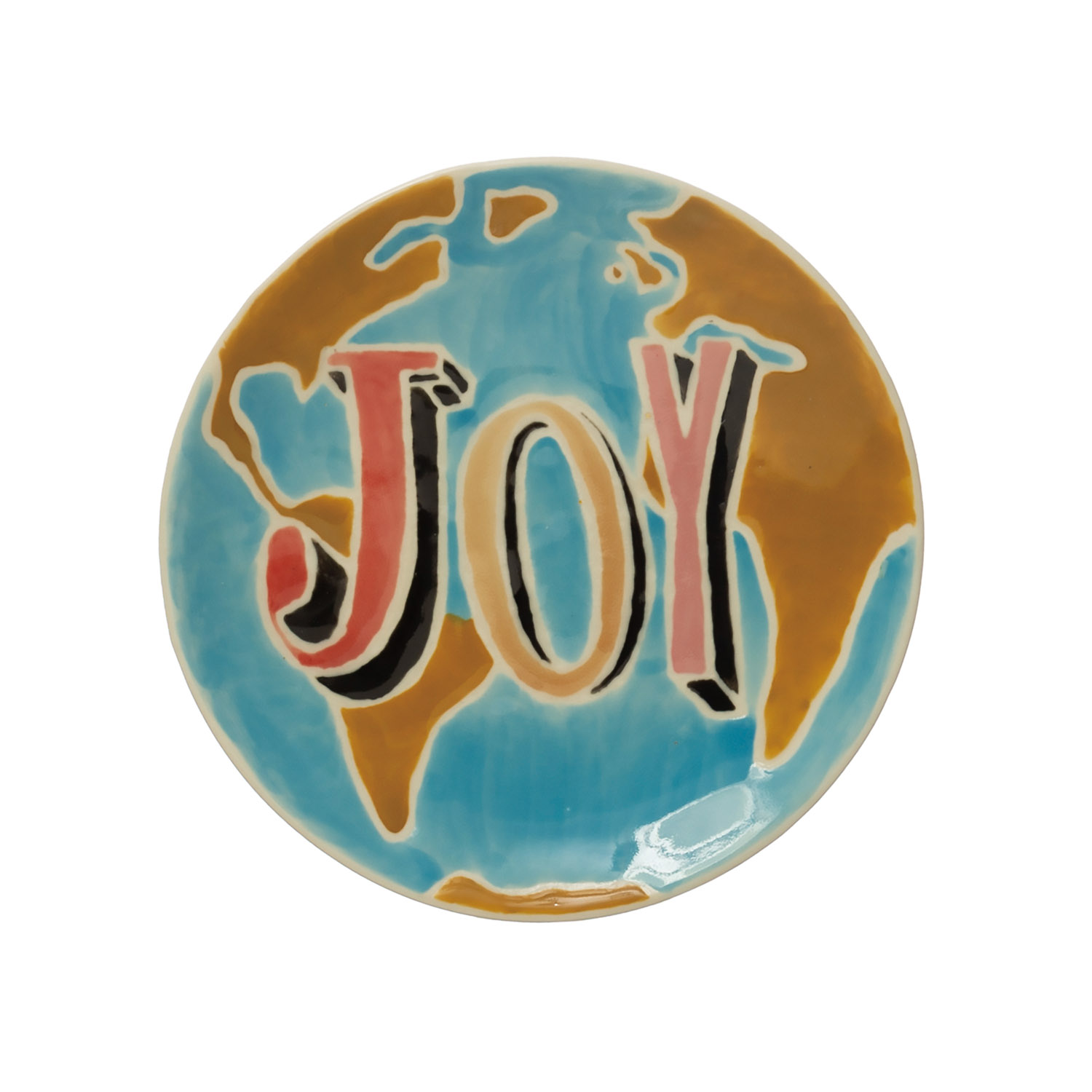 Catalog Name: 5" Round Hand-Painted Stoneware Plate w/ Wax Relief Word "Joy", Multi Color ©