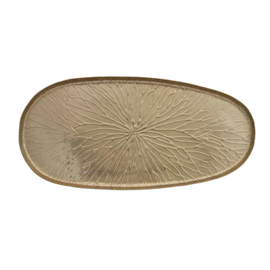 Catalog Name: 23-1/4"L x 11-1/4"W Embossed Aluminum Tray, Gold Finish