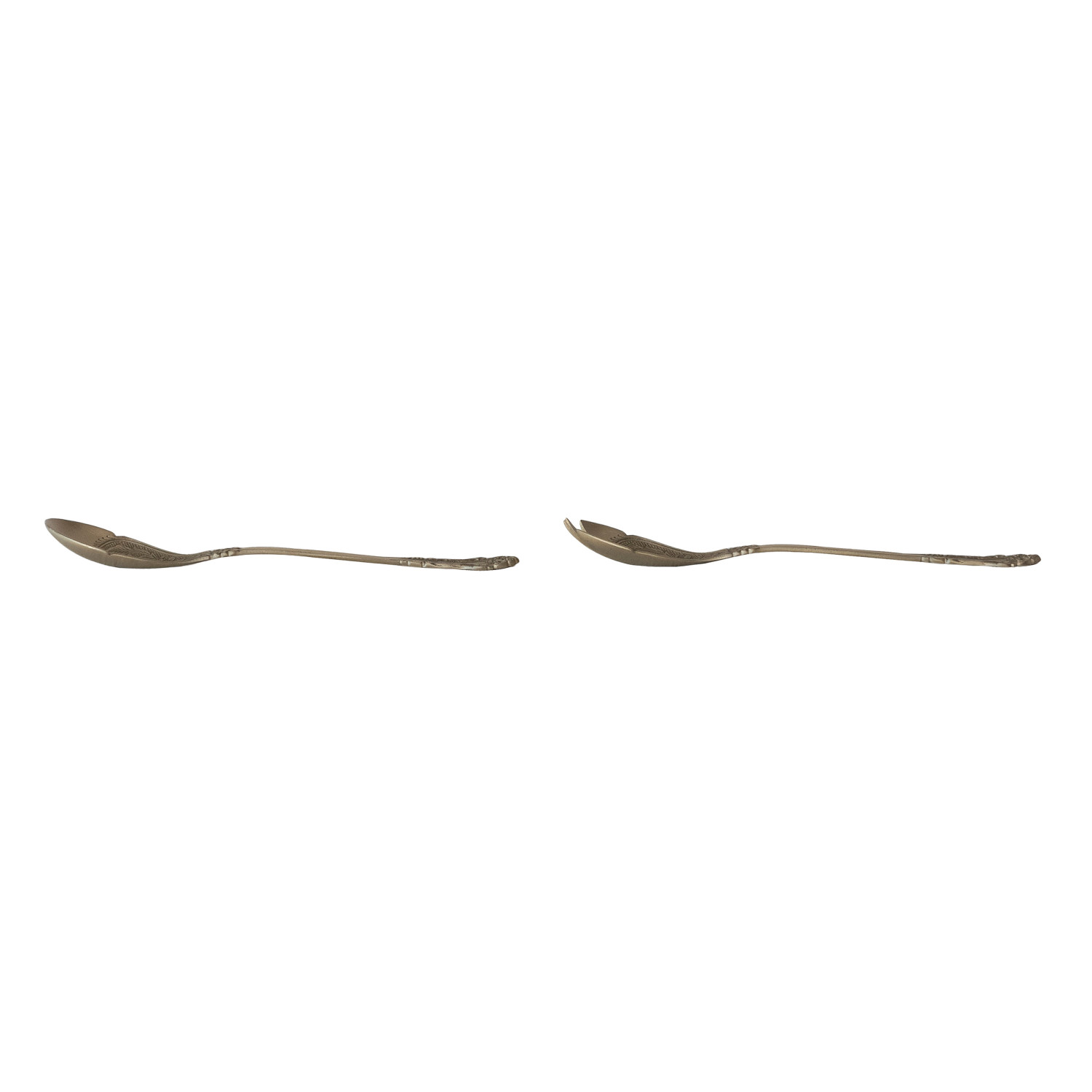 Catalog Name: 10-1/2"L Embossed Brass Salad Servers, Set of 2 in Printed Drawstring Bag