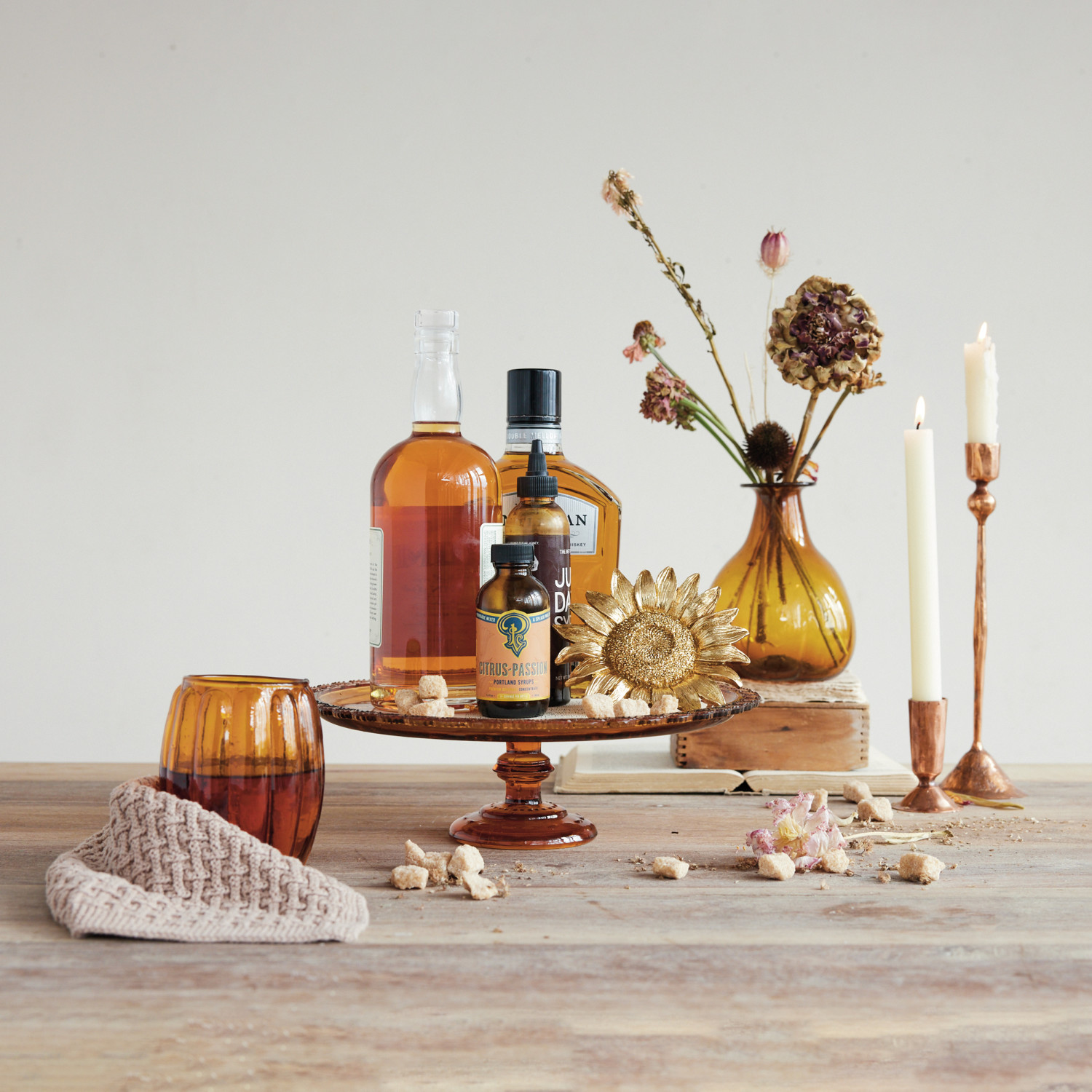 Pressed Glass Scalloped Pedestal with Pattern, Amber Color