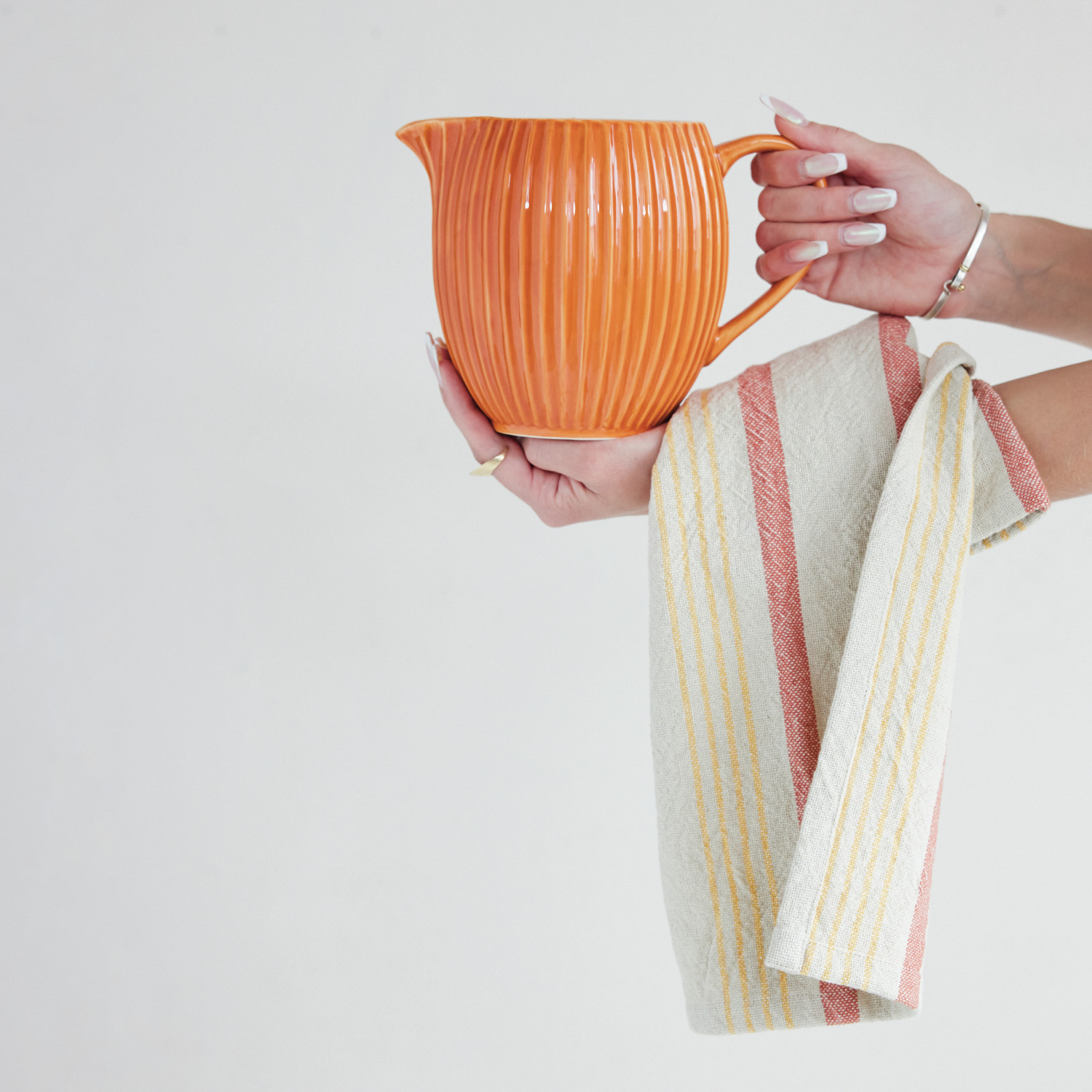 1-3/4 Quart Stoneware Pleated Pitcher, Orange Color