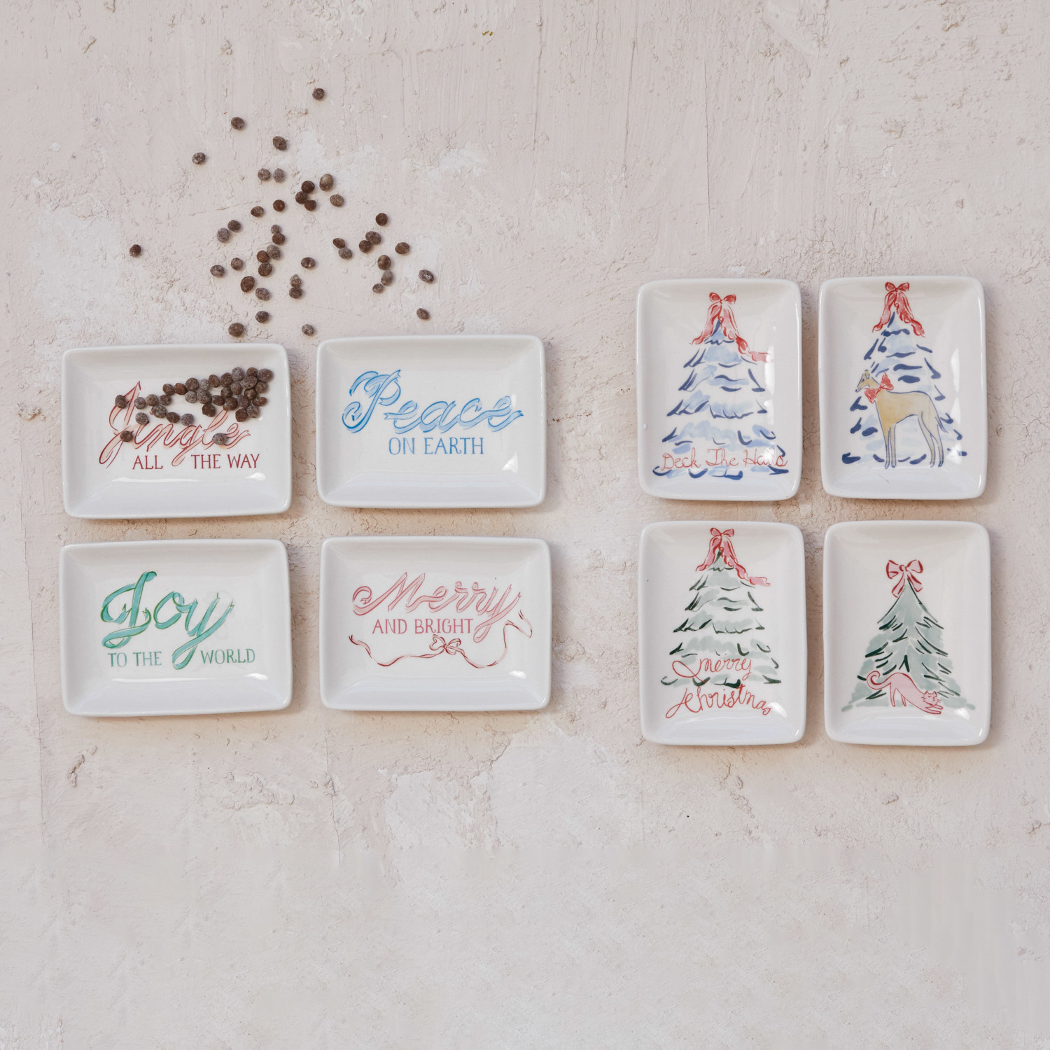 Stoneware Dish w/ Christmas Tree & Animal/Saying, 4 Styles ©