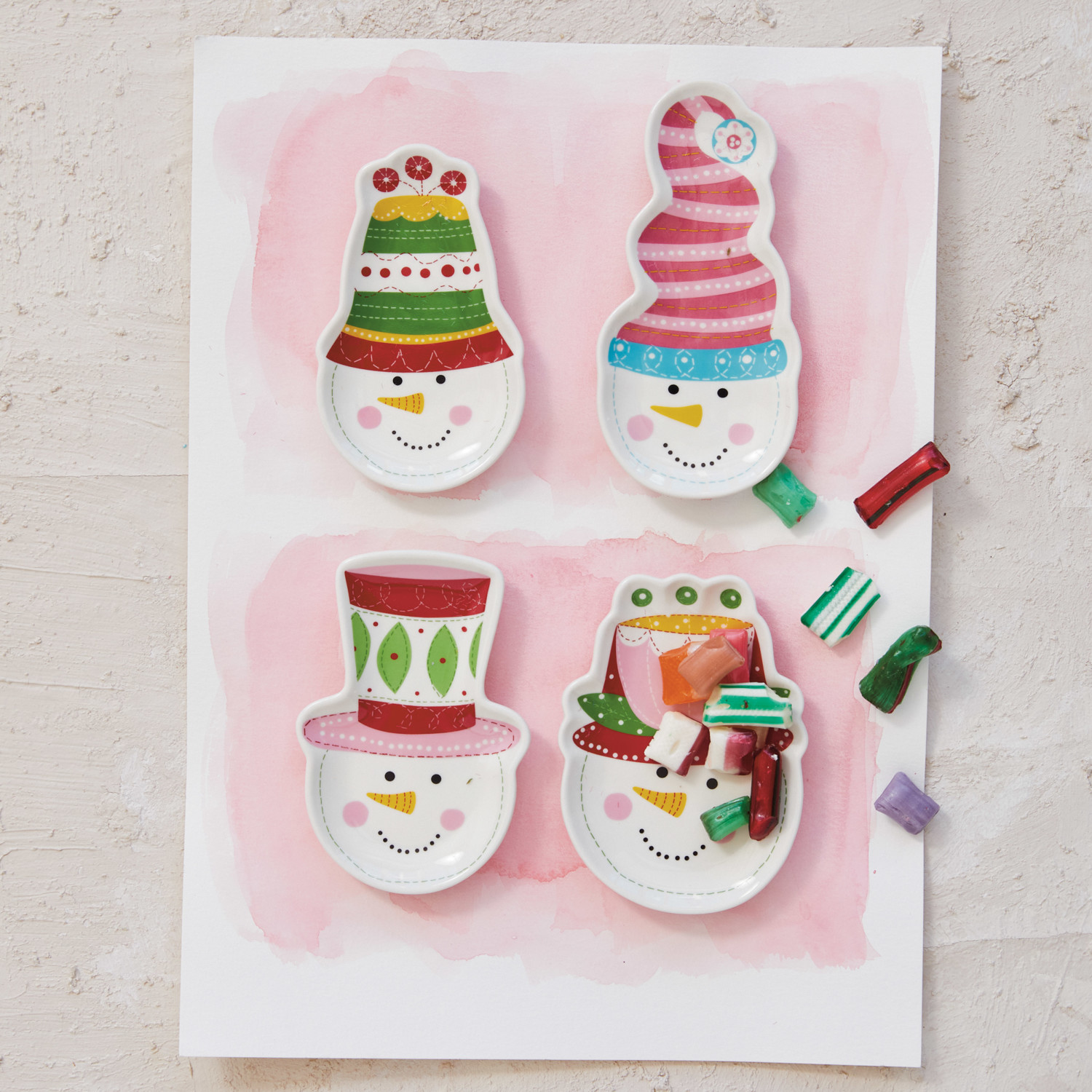 Catalog Name: 5"L x 3-1/2"W Stoneware Snowman w/ Hat Dish, Multi Color, 4 Styles ©