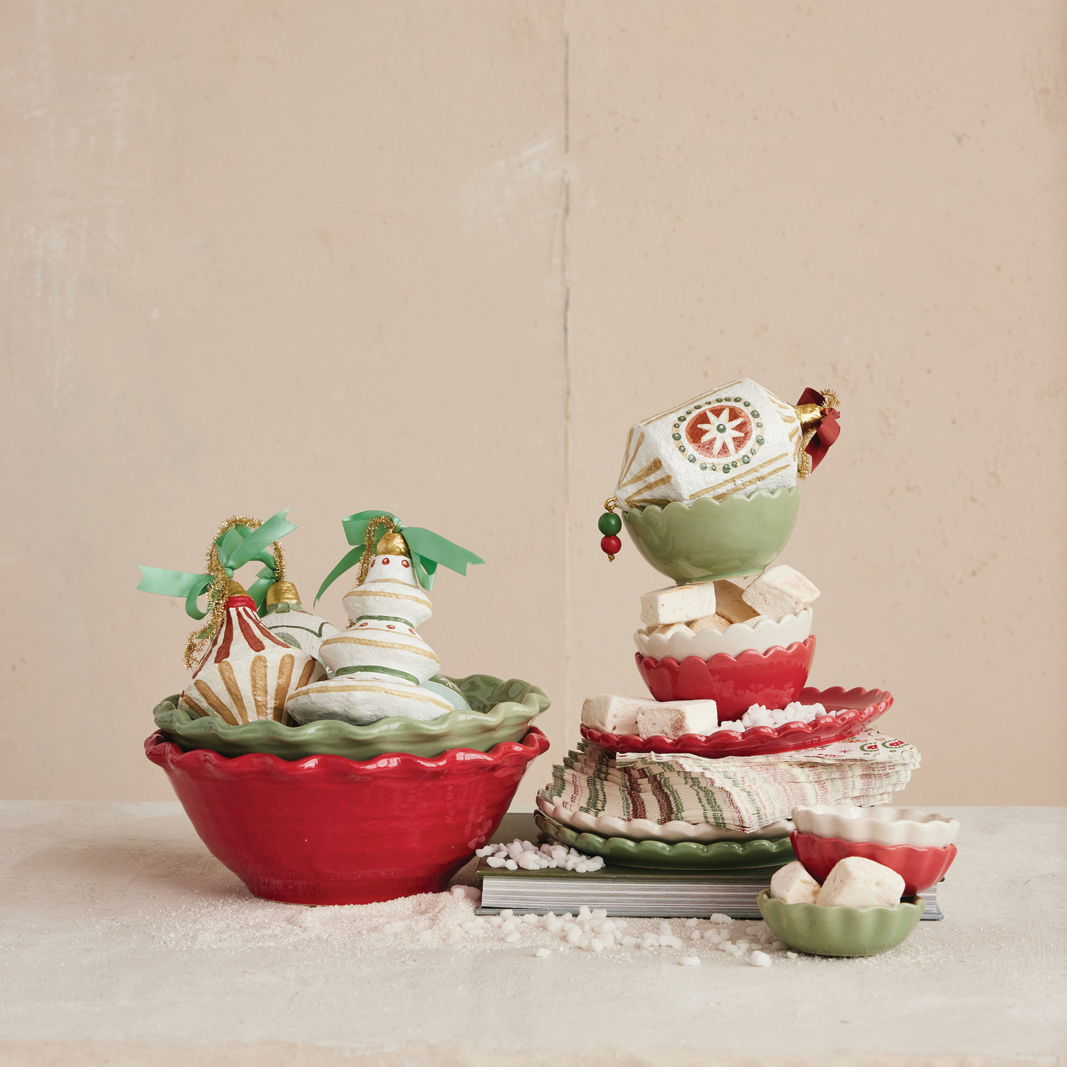 Catalog Name: 10" Round x 4"H Stoneware Scalloped Bowl, 2 Colors