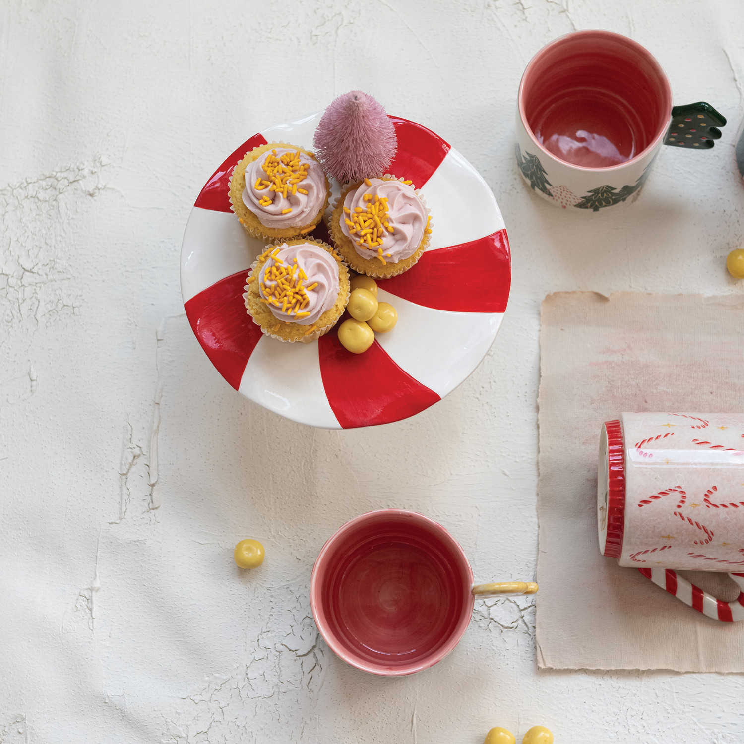Hand-Painted Ceramic Peppermint Candy Shaped Pedestal, Red & White