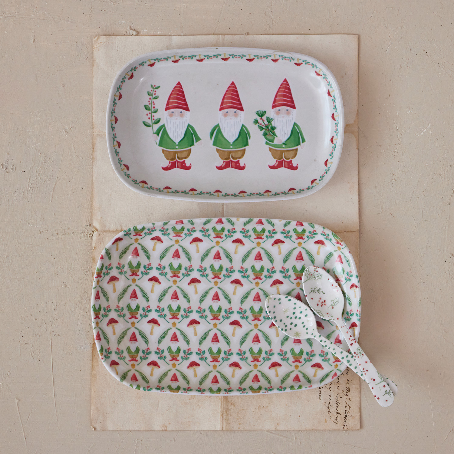 Bamboo Fiber Tray with Woodland Holiday Image/Patterns, Set of 2 ©