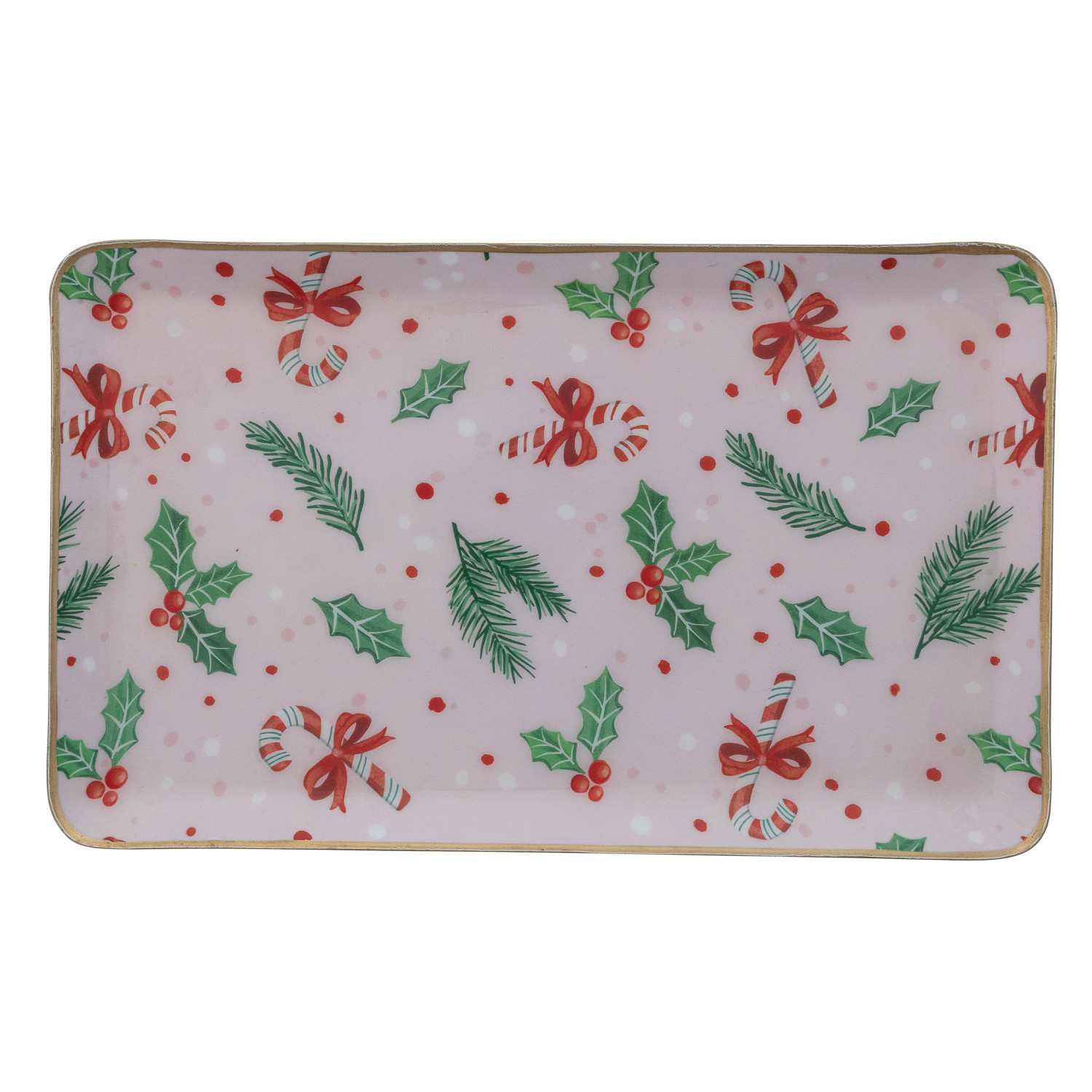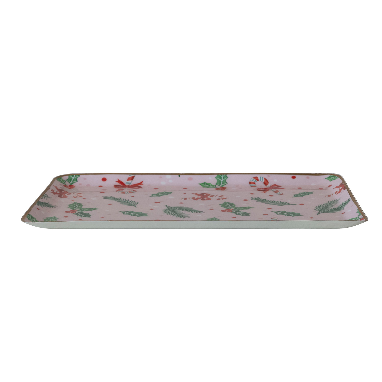 Catalog Name: 13"L x 8"W Enameled Metal Tray w/ Holiday Pattern & Gold Edges, Multi Color ©