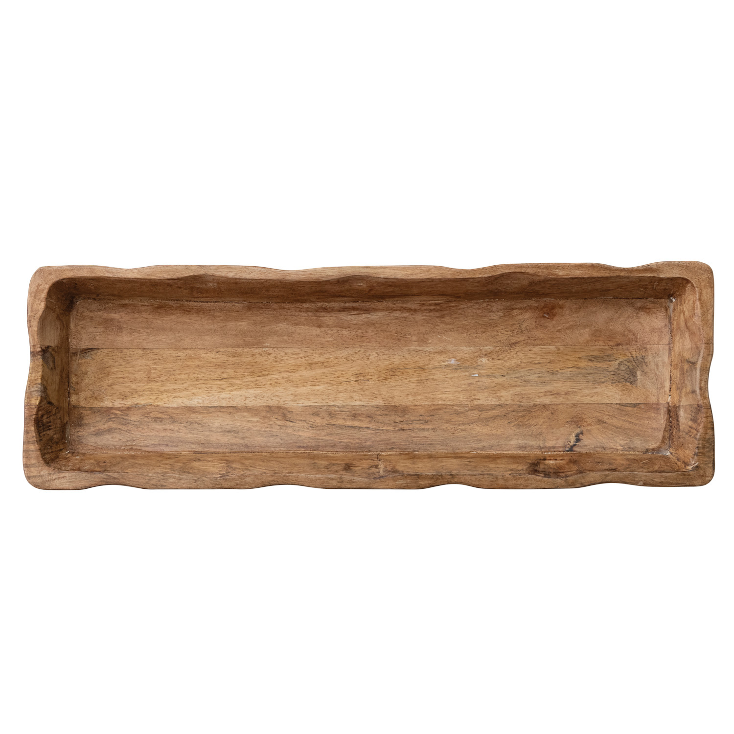 Catalog Name: 22-1/2"L x 7-1/2"W Hand-Carved Mango Wood Tray, Natural