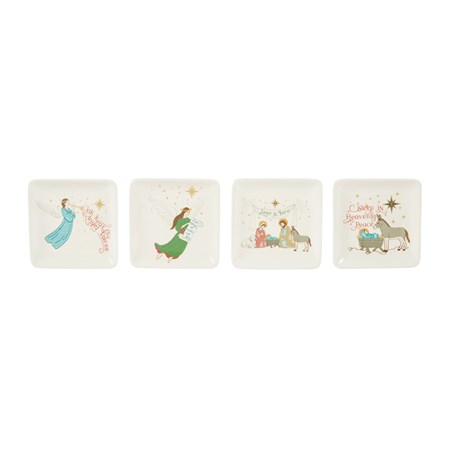 Catalog Name: 11-3/4" Round x 5-3/4"H Enameled Mango Wood Pedestal w/ Holiday Pattern, Multi Color & Natural ©