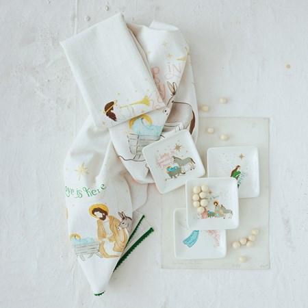 Enameled Mango Wood Pedestal with Holiday Pattern ©