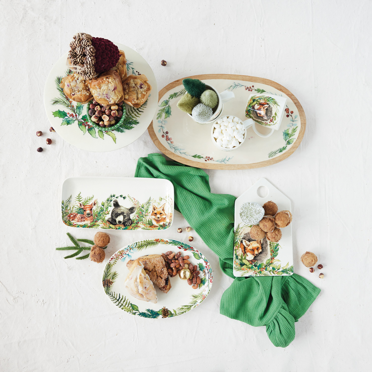 Enameled Mango Wood Pedestal with Seasonal Botanicals ©