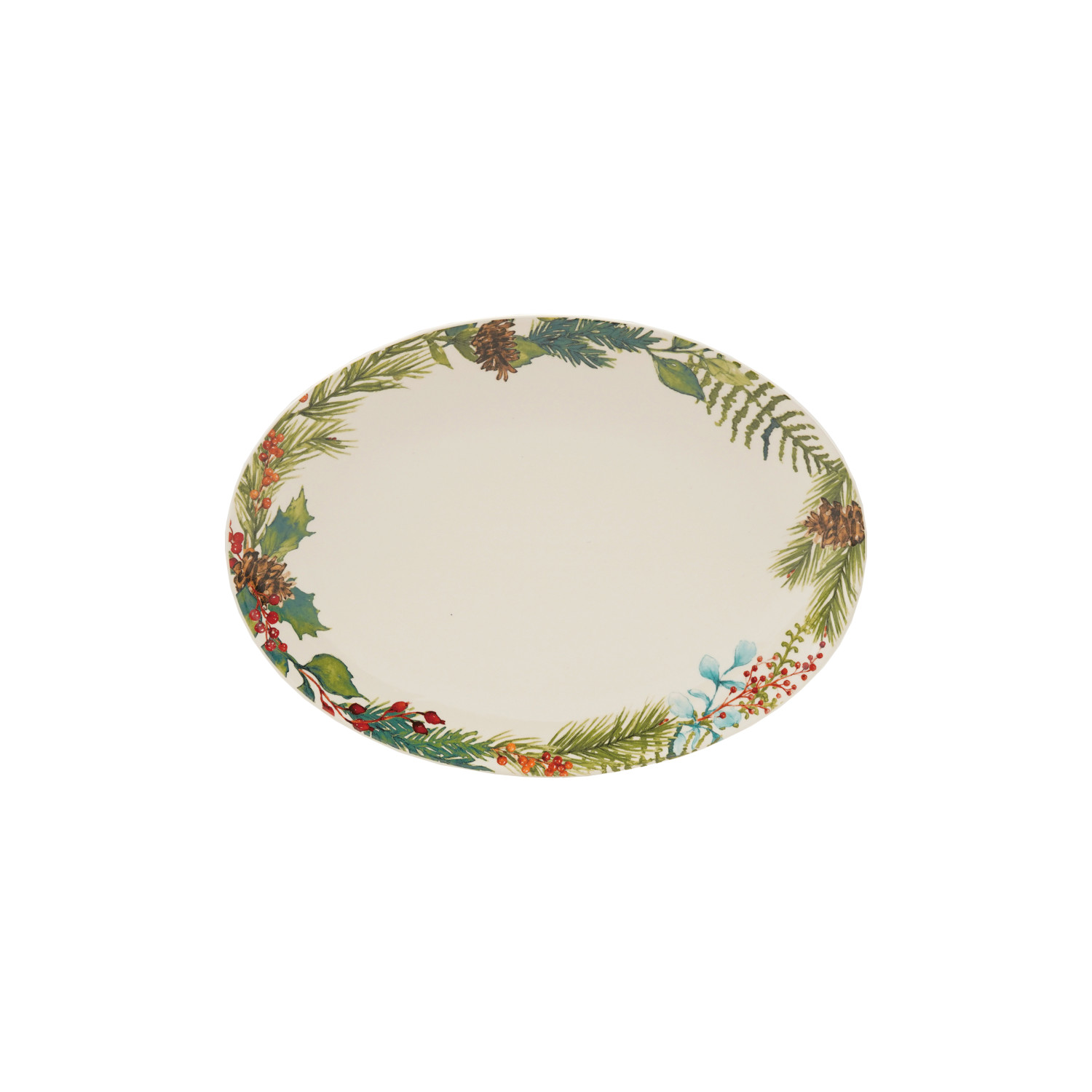 Catalog Name: 12"L x 9"W Oval Stoneware Platter w/ Seasonal Botanicals Border, Multi Color ©
