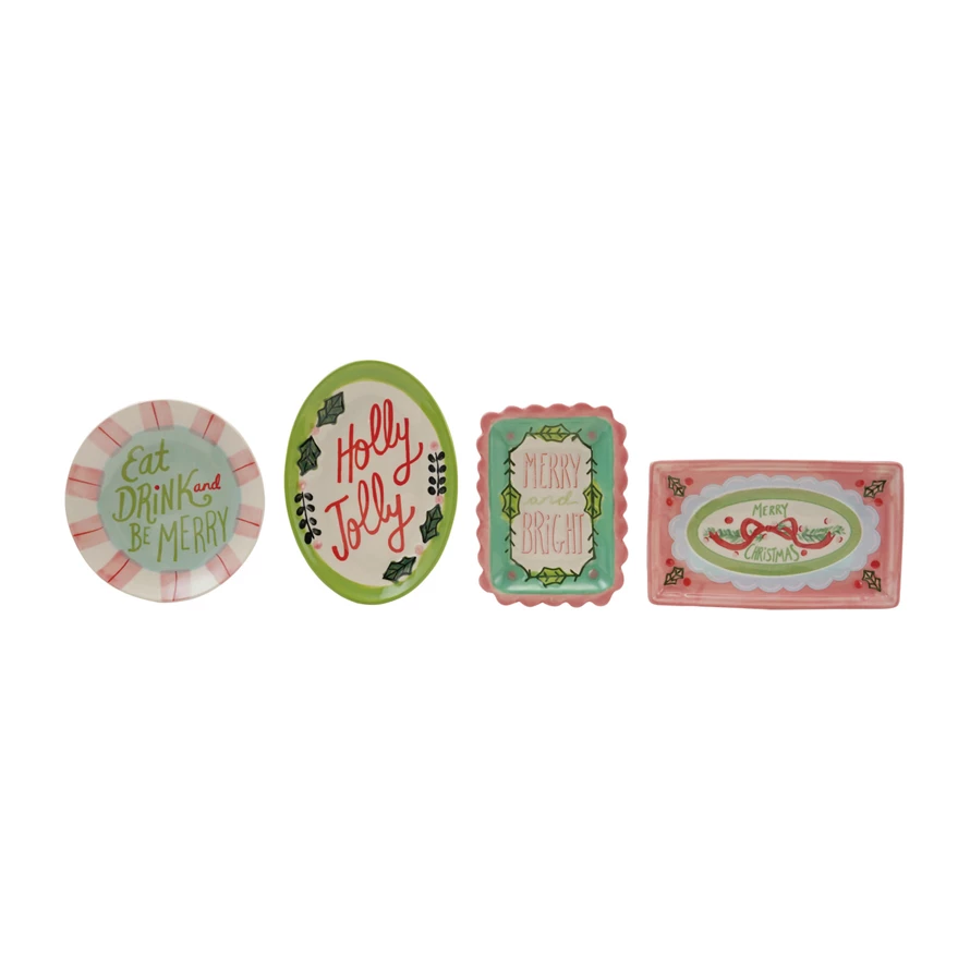 Stoneware Dish with Holiday Saying, 4 Styles ©