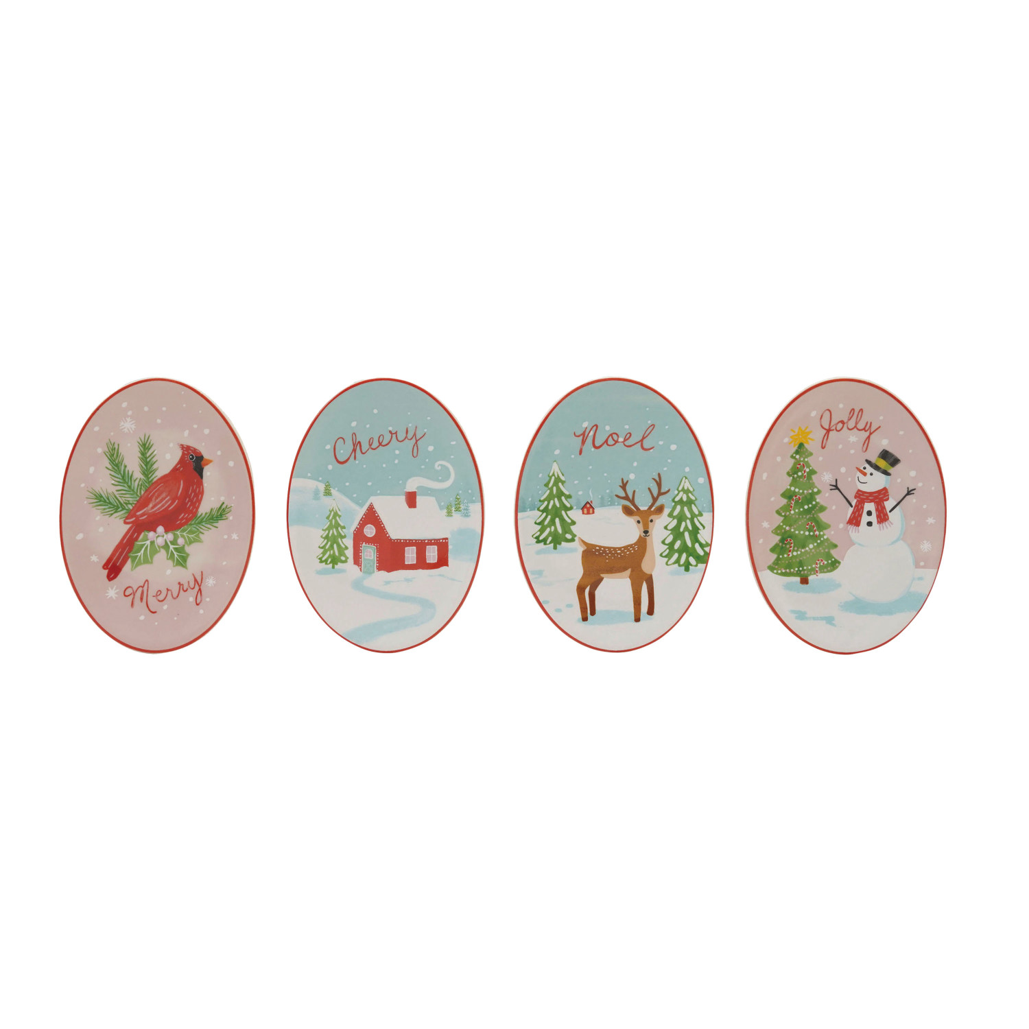 Stoneware Dish with Holiday Image & Word, 4 Styles ©
