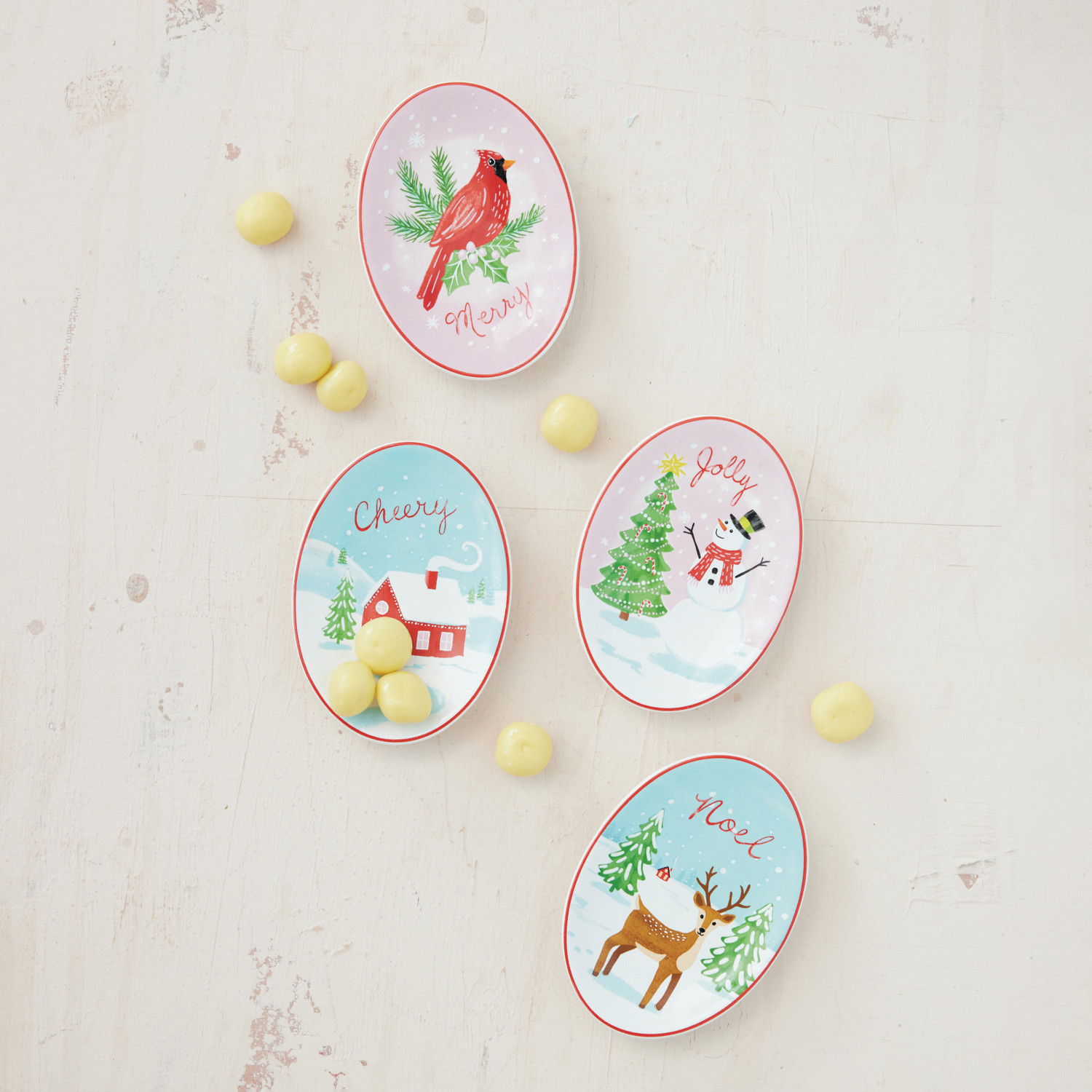 Catalog Name: 4"L x 3"W Stoneware Dish w/ Holiday Image & Word, Multi Color, 4 Styles ©