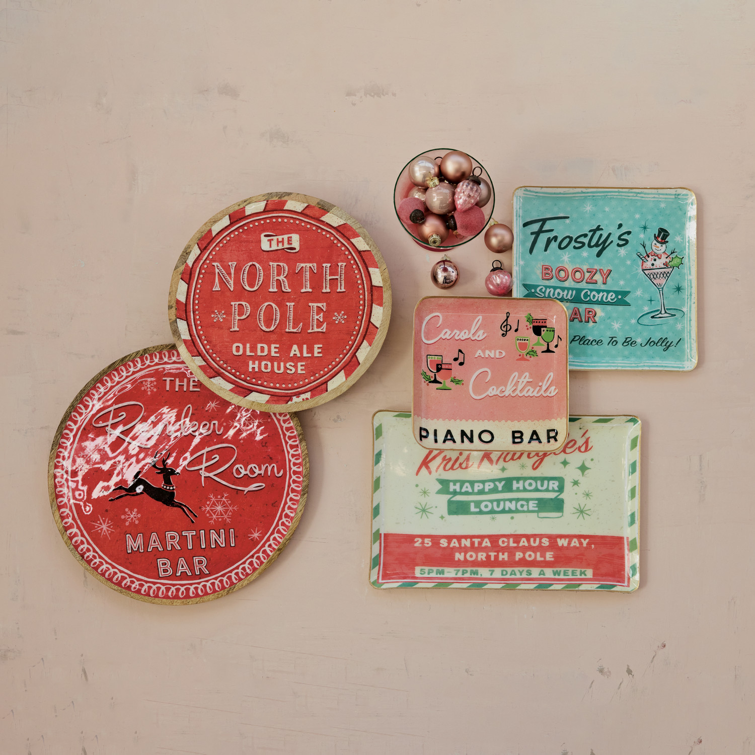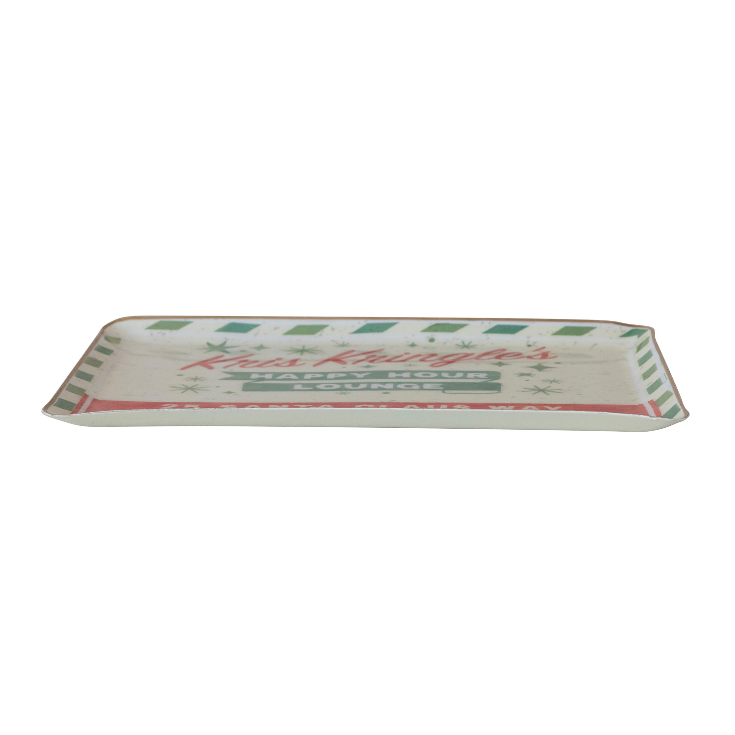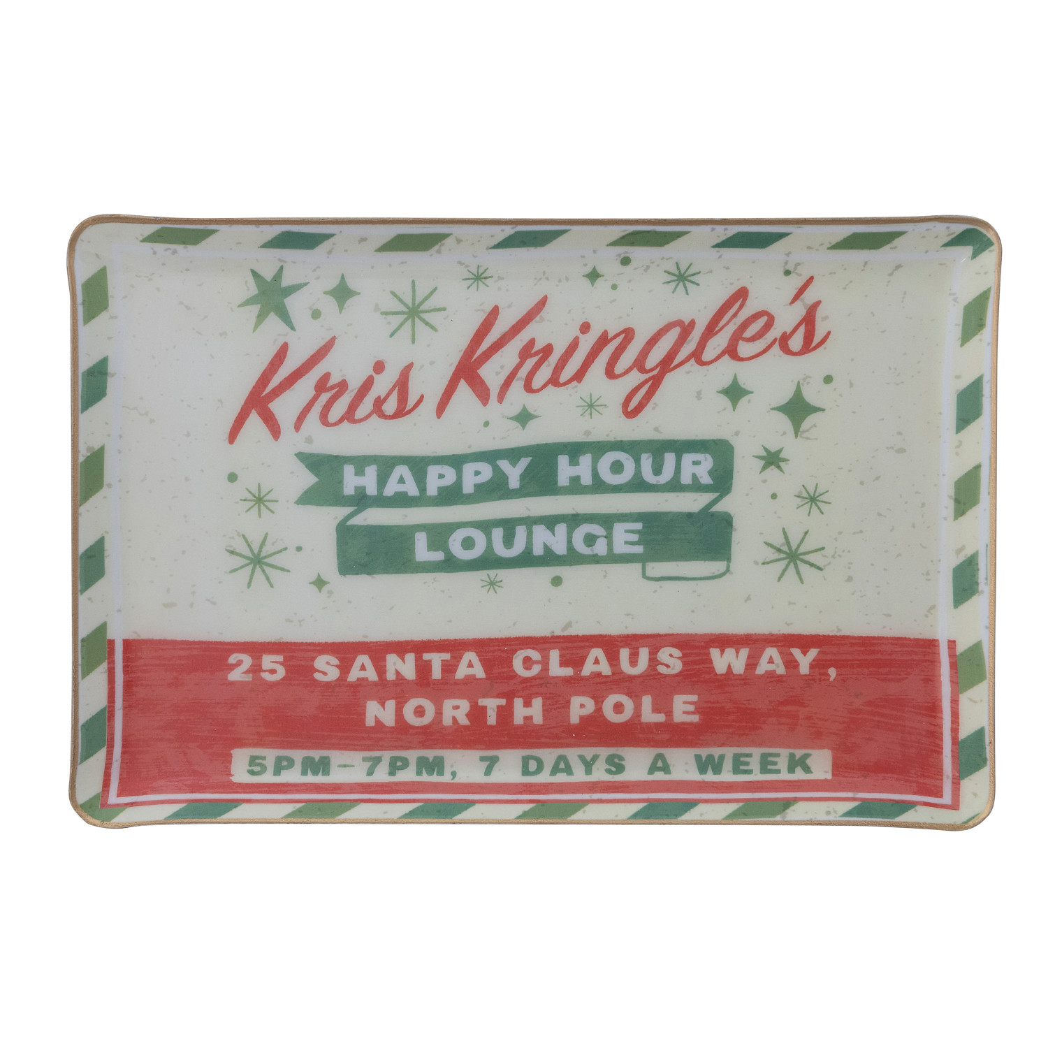 Catalog Name: 13"L x 8"W Enameled Metal Tray w/ Snowflakes, Striped Border & Gold Edge "Kris Kringle's...", Multi Color ©