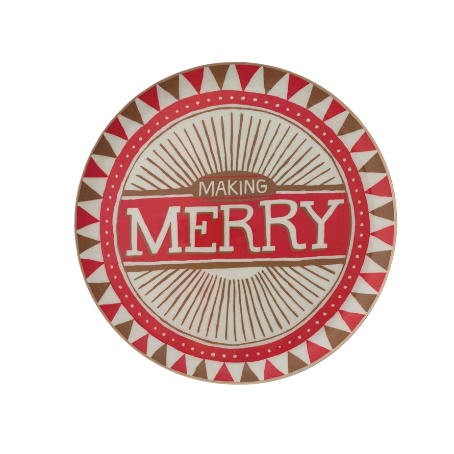 Enameled Metal Tray with Pattern & Gold Edge "Making Merry" ©