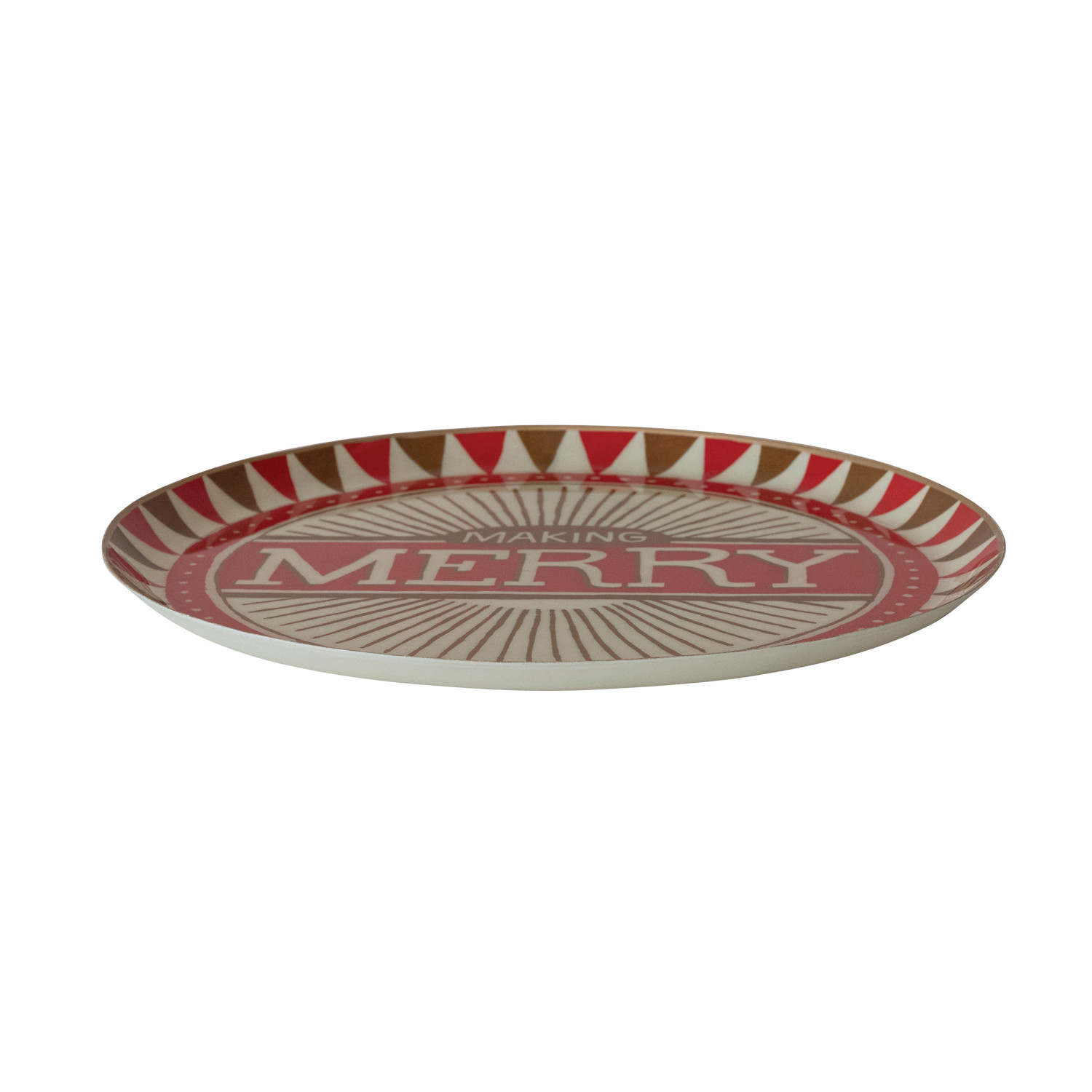 Catalog Name: 13" Round Enameled Metal Tray w/ Pattern & Gold Edge "Making Merry", Multi Color ©