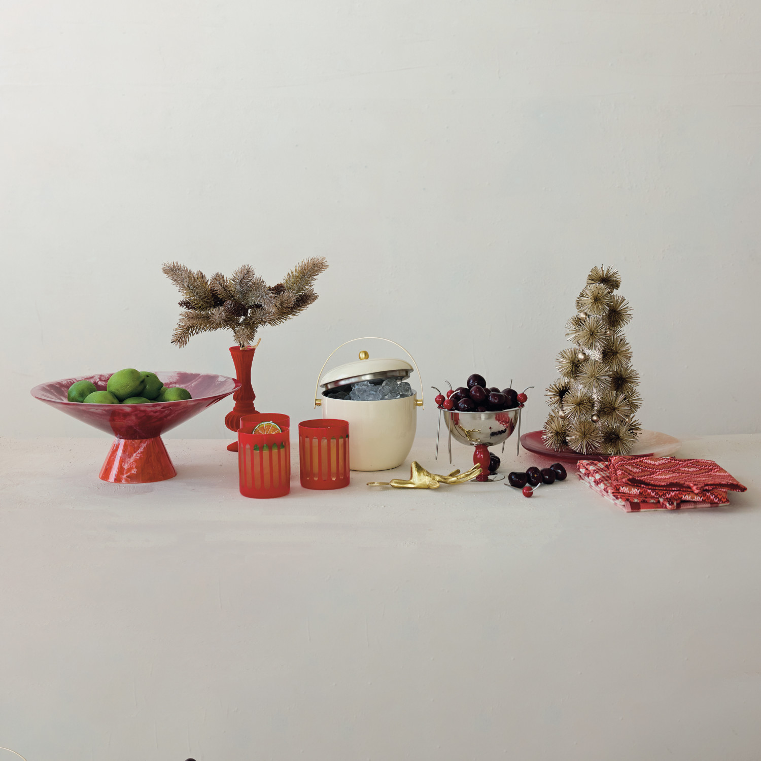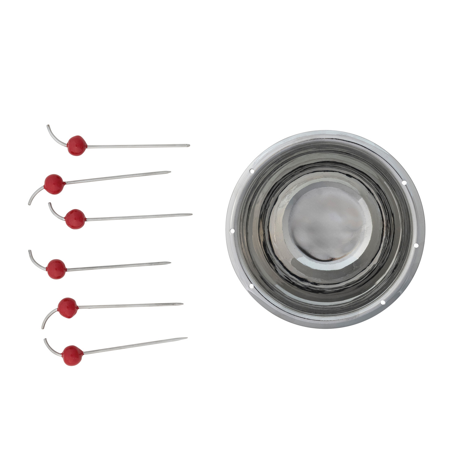 Enameled Stainless Steel Footed Bowl with (6) Appetizer Picks, Set of 7