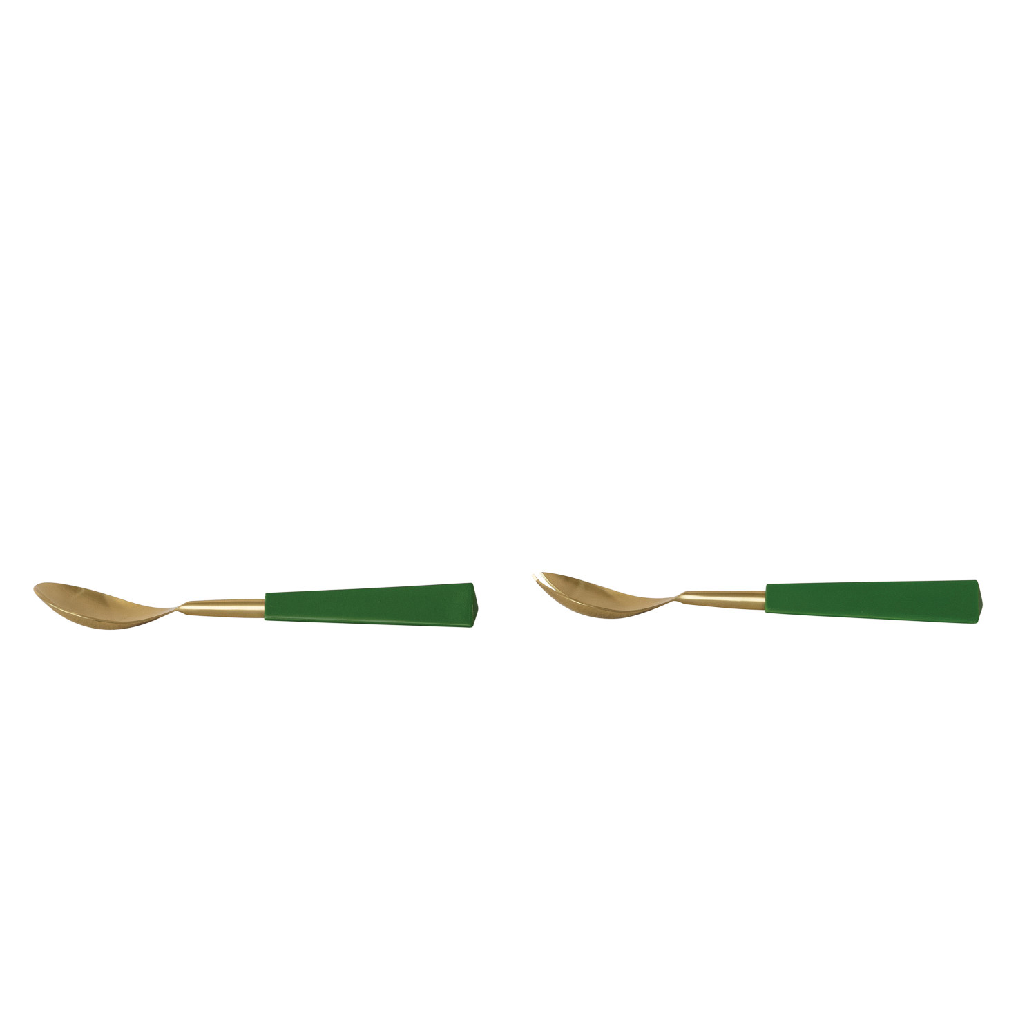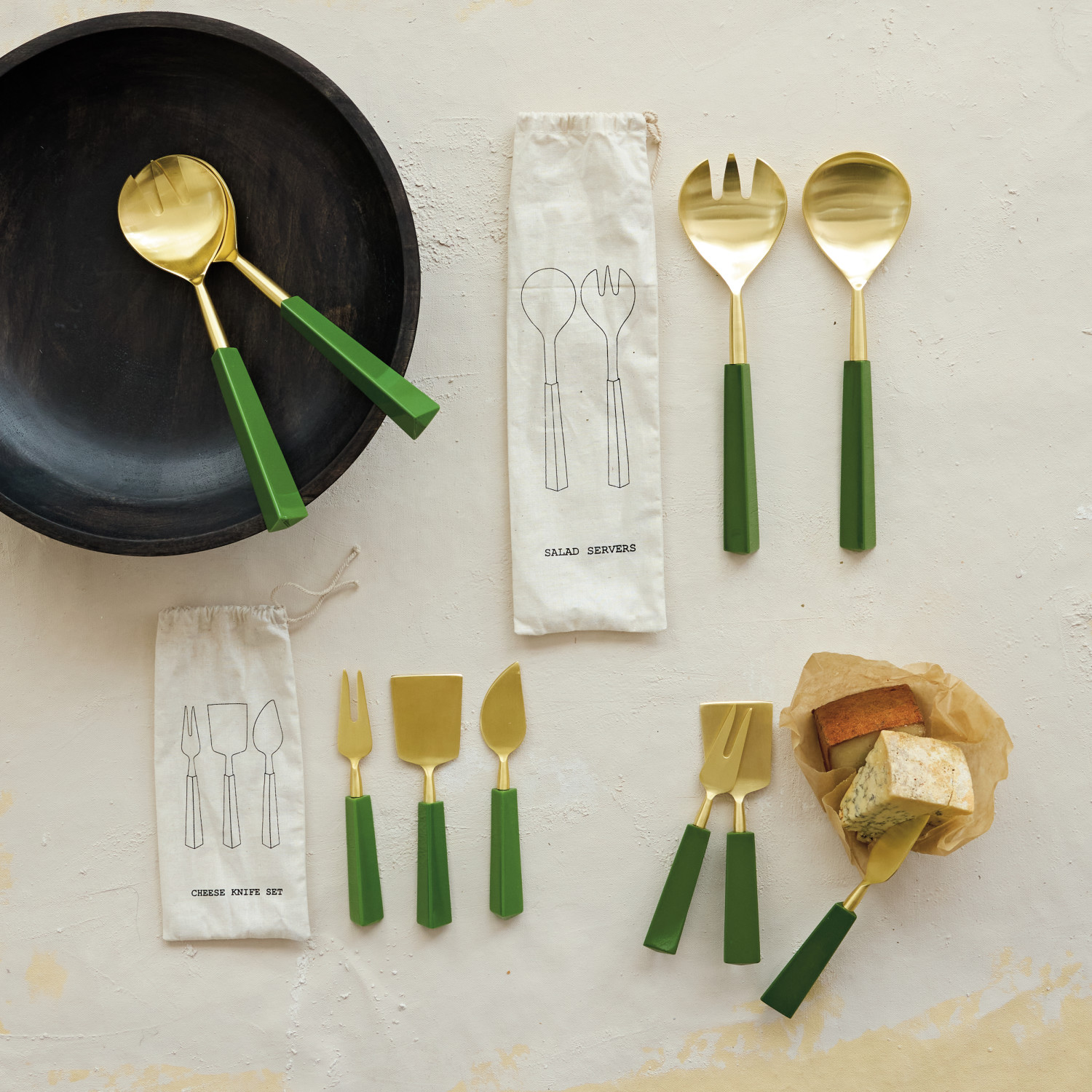 Stainless Steel Salad Servers with Resin Handles & Green, Set of 2 in Printed Drawstring Bag