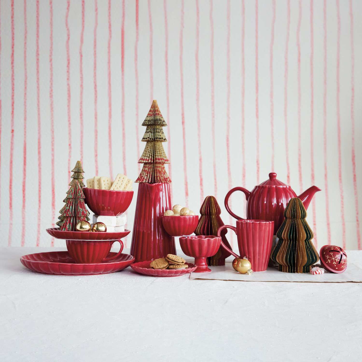 Stoneware Ribbed Bowl, Red (Each One Will Vary)