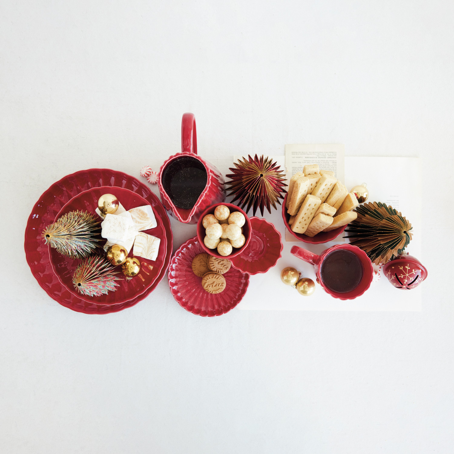 Catalog Name: 4-3/4" Round x 2-1/2"H Stoneware Ribbed Bowl, Reactive Glaze, Red (Each One Will Vary)