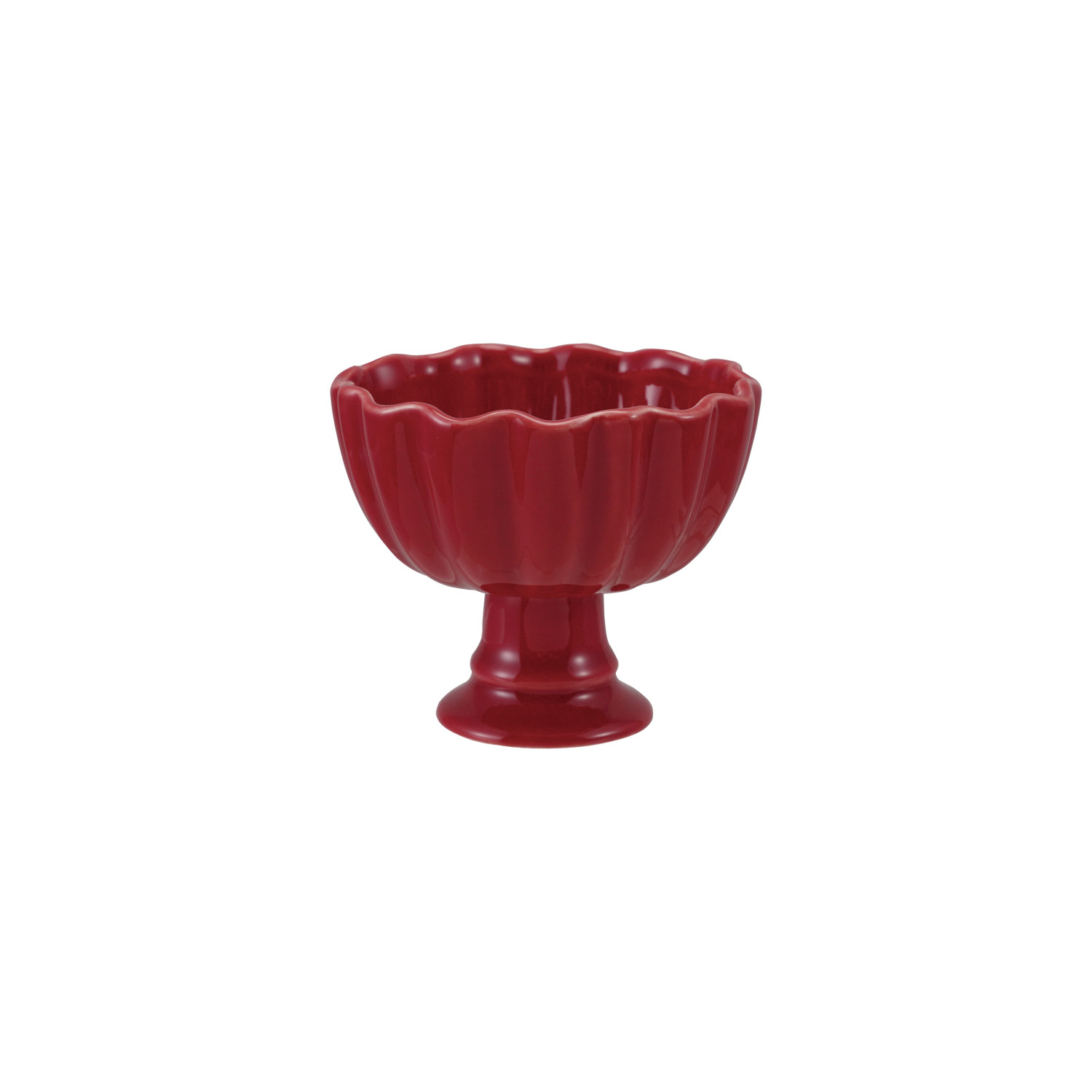 Catalog Name: 4" Round x 3-1/4"H Stoneware Footed Scalloped Bowl, Reactive Glaze, Red (Each One Will Vary)