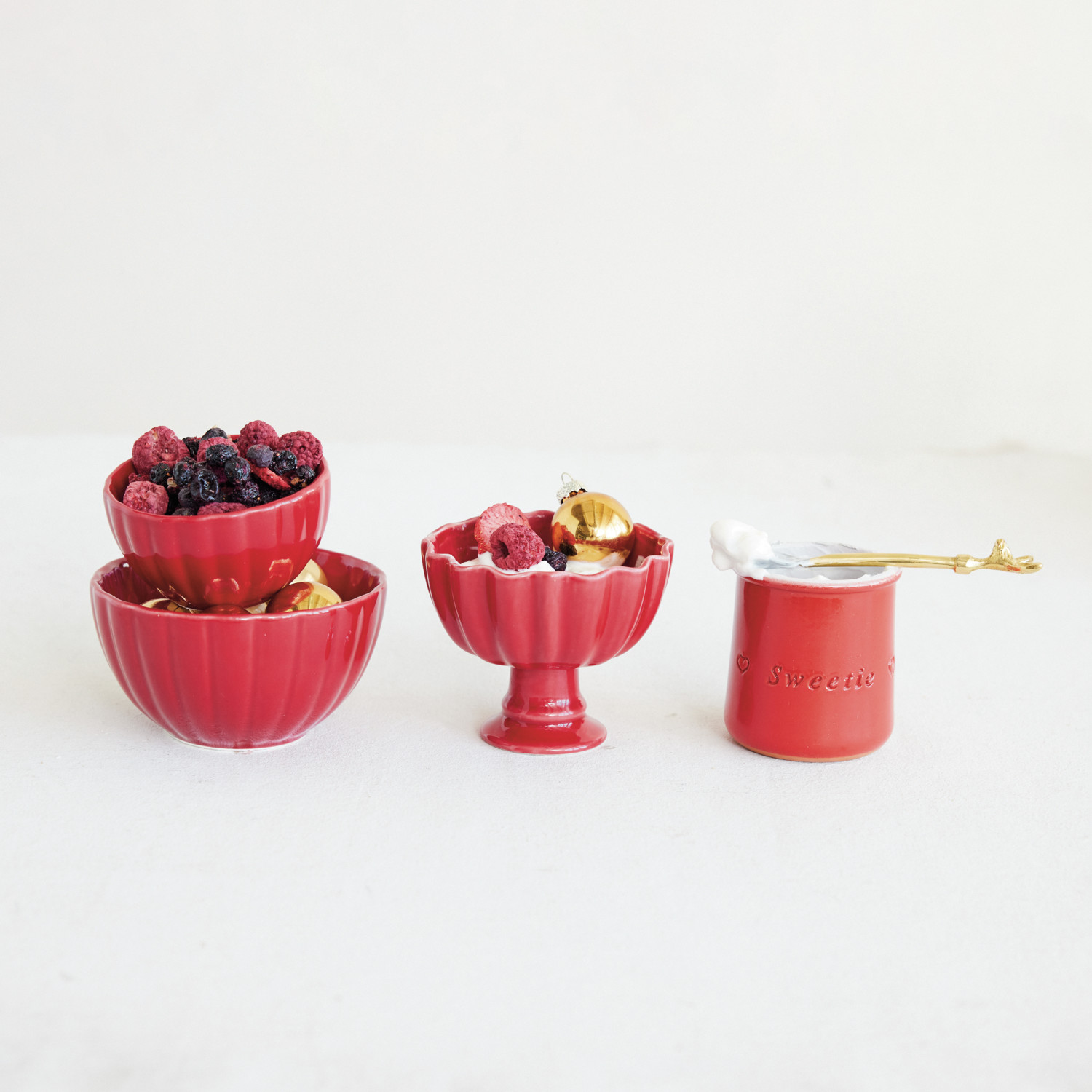 Stoneware Footed Scalloped Bowl, Red (Each One Will Vary)