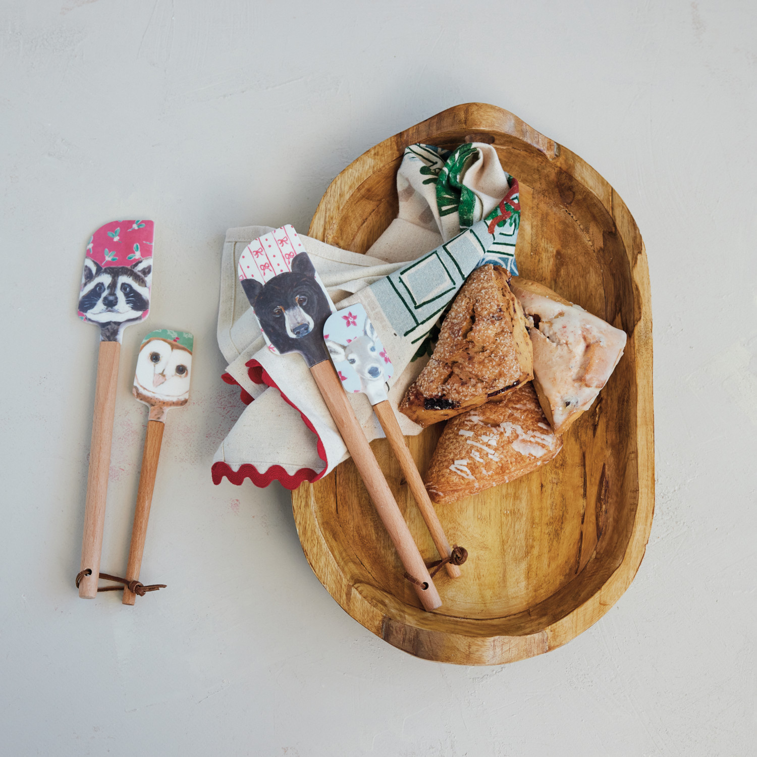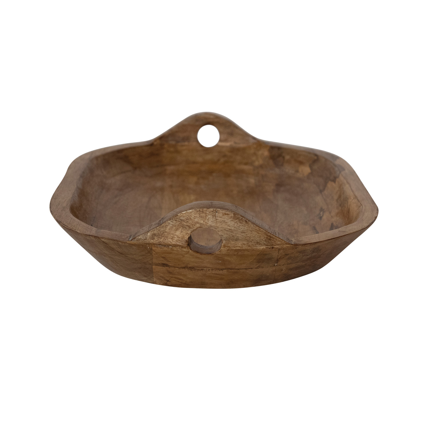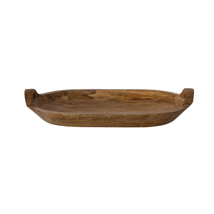 Hand-Carved Mango Wood Tray with Handles, Natural