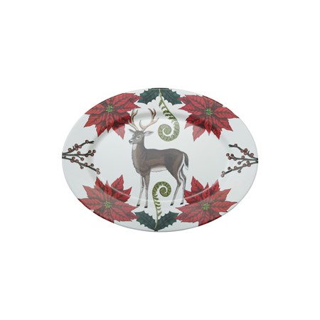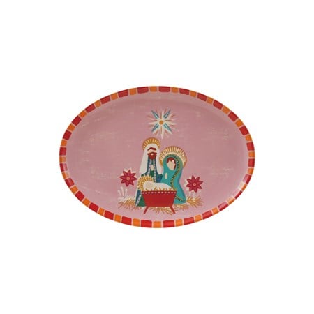 Catalog Name: 17-3/4"L x 11"W x 3"H Oval Hand-Carved Mango Wood Tray w/ Handles, Natural