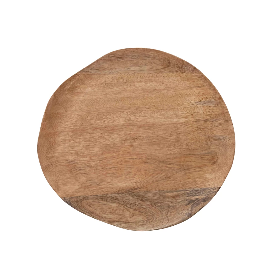 Catalog Name: 13-1/2"L x 13"W Hand-Carved Mango Wood Organic Shaped Platter, Natural