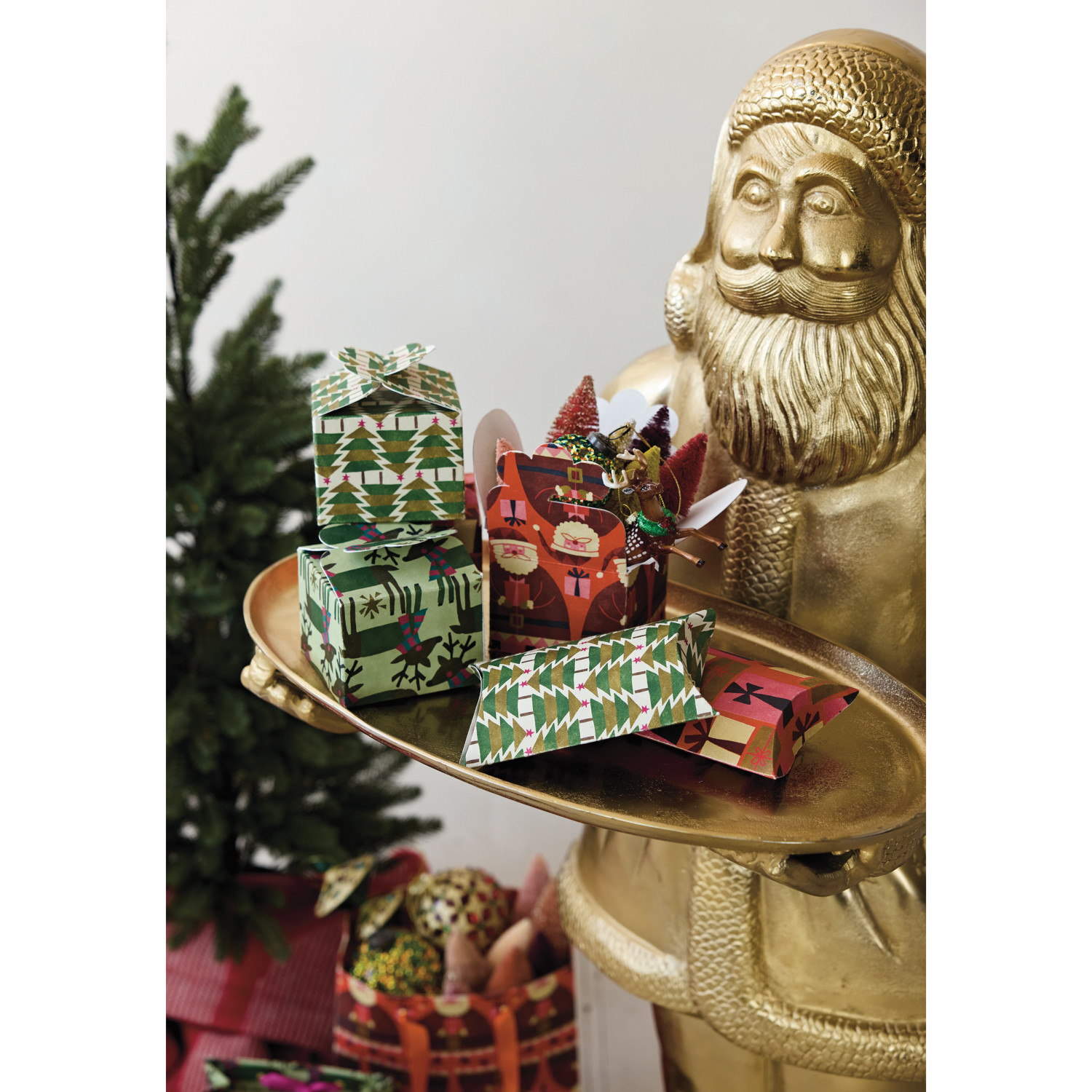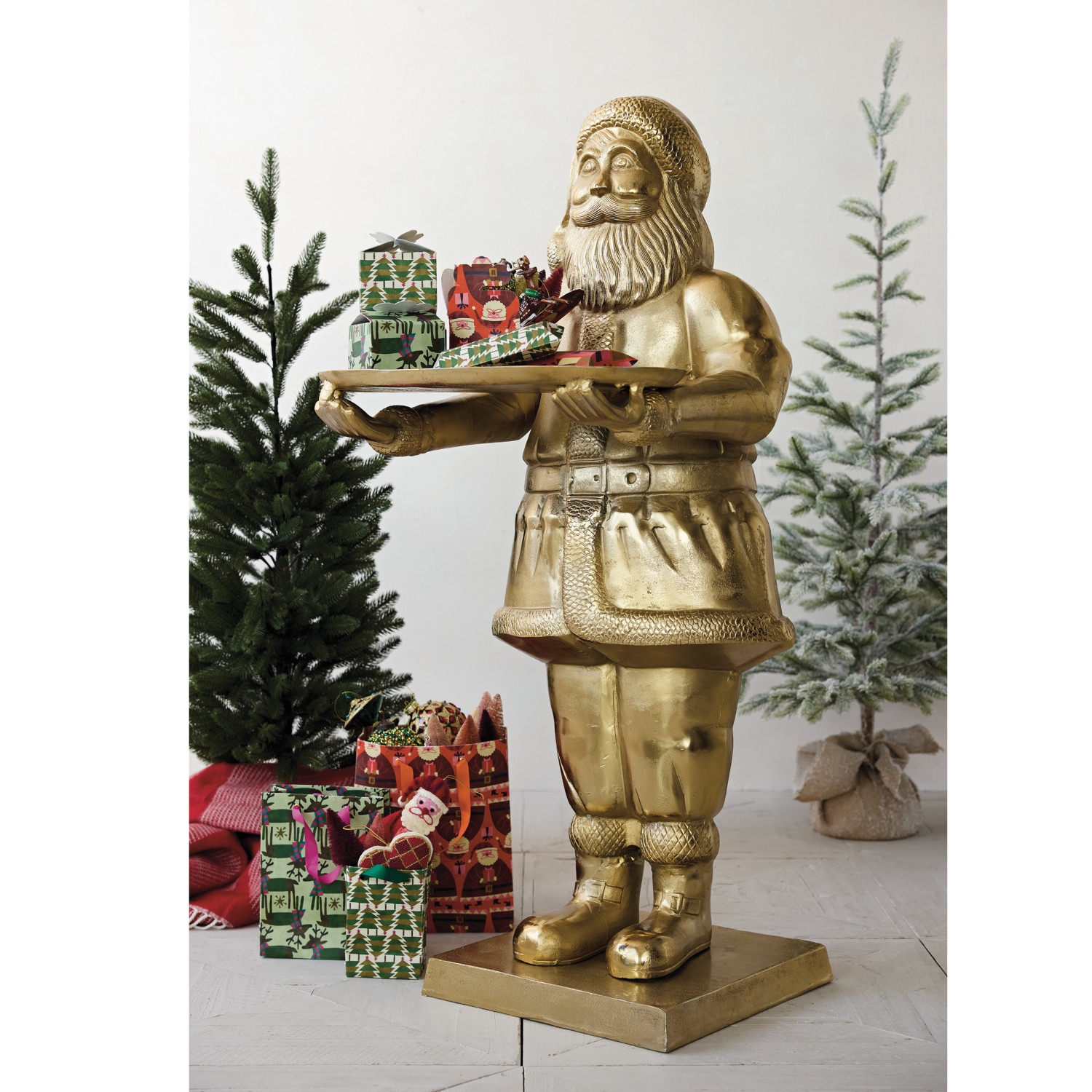 Cast Aluminum Santa Holding Tray, Gold Finish