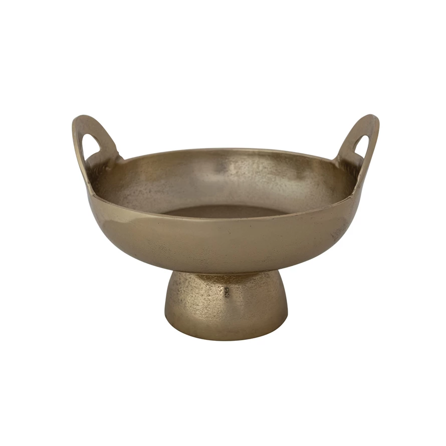 Cast Aluminum Footed Bowl with Handles, Gold Finish