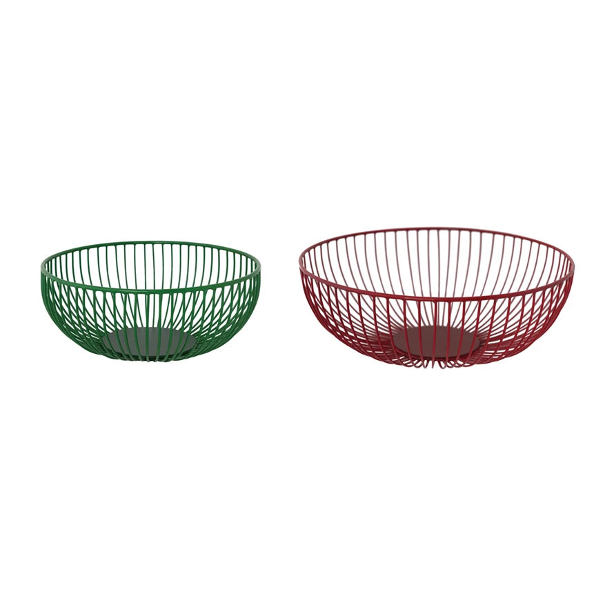 Catalog Name: 14" Round x 5"H & 10" Round x 4"H Metal Wire Baskets, Red & Green, Set of 2