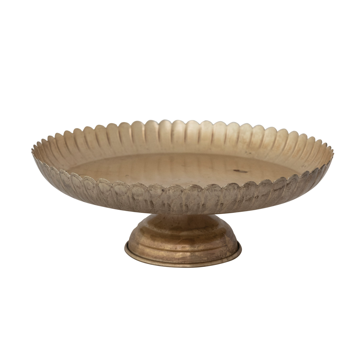 Catalog Name: 11-3/4" Round x 4"H Metal Scalloped Pedestal, Antique Gold Finish