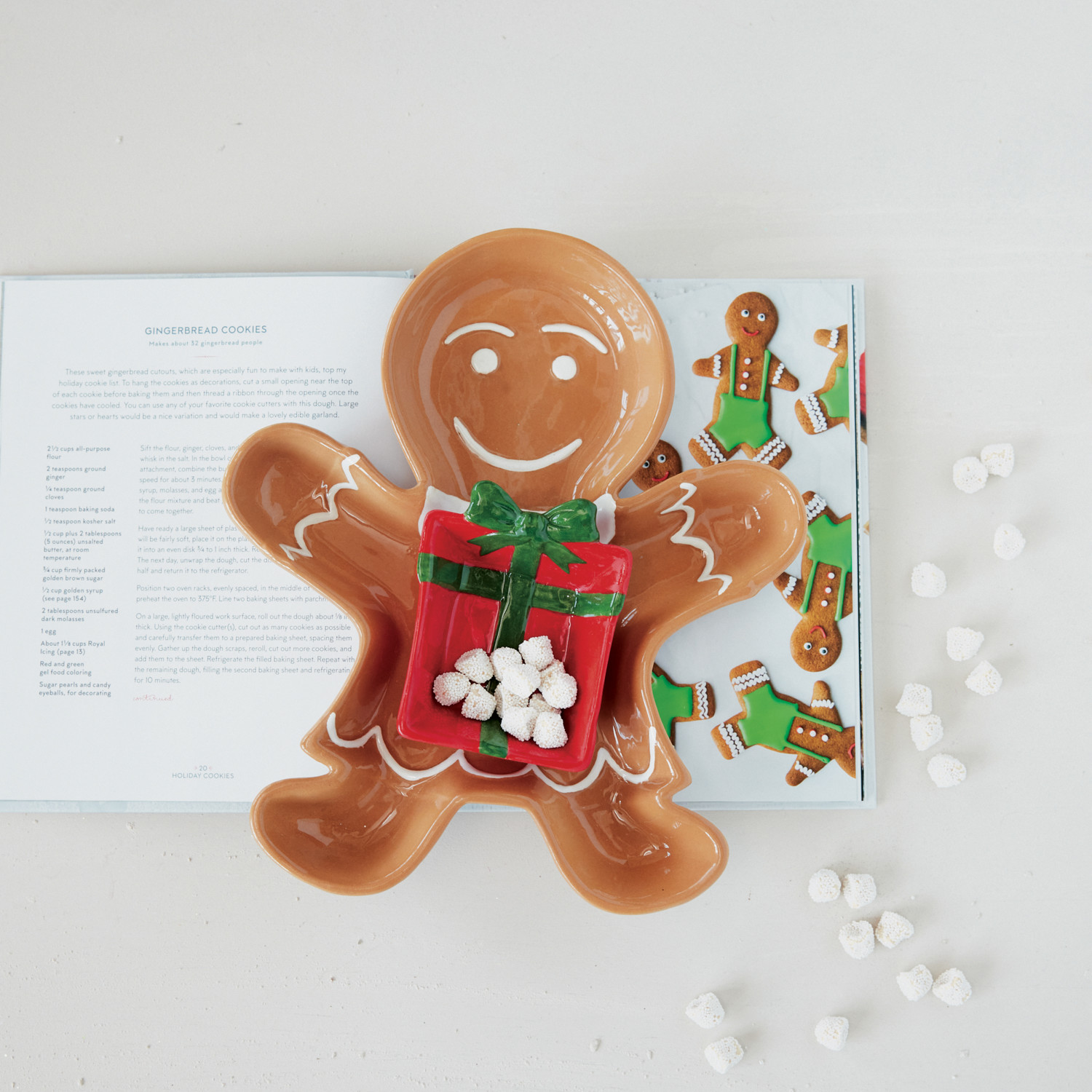 Hand-Painted Ceramic Gingerbread Shaped Plate with Nesting Gift Shaped Dish, Set of 2