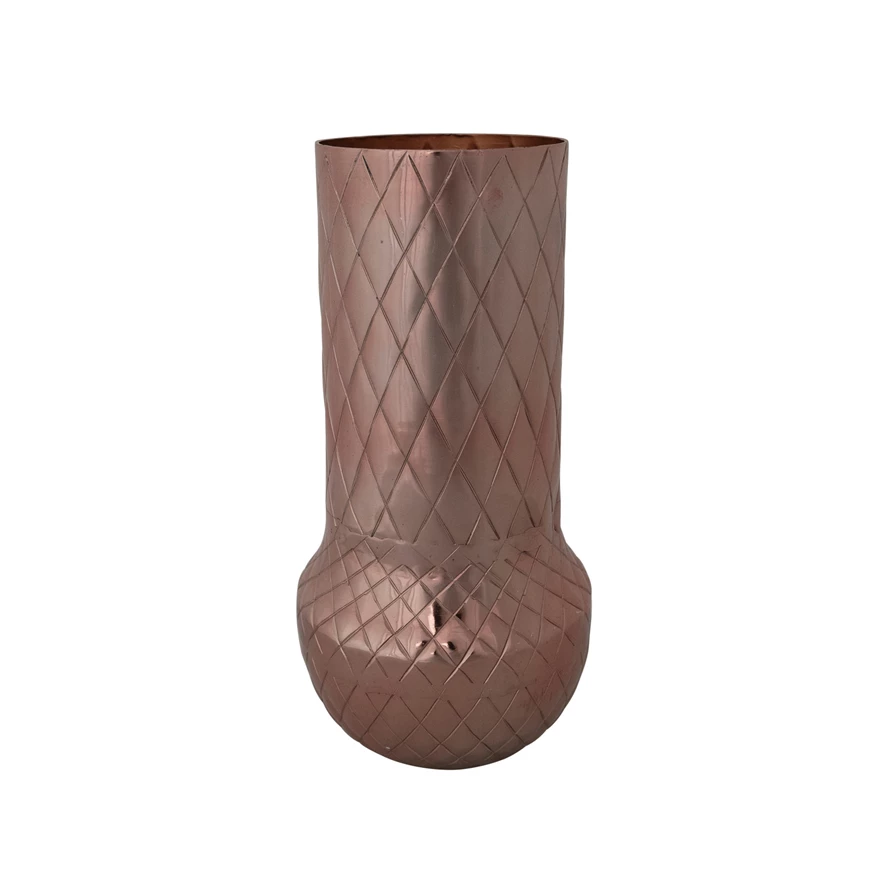 Catalog Name: 6" Round x 11-3/4"H Metal Vase w/ Diamond Pattern, Copper Finish
