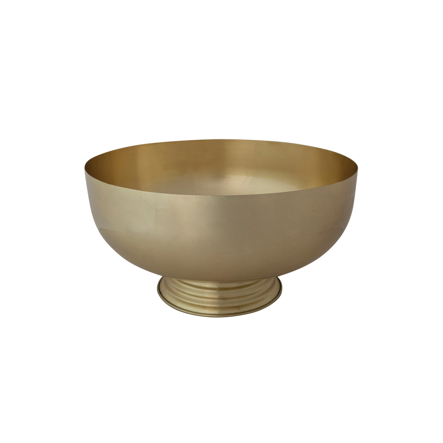 Catalog Name: 12" Round x 6-1/2"H Metal Footed Bowl, Matte Gold Finish