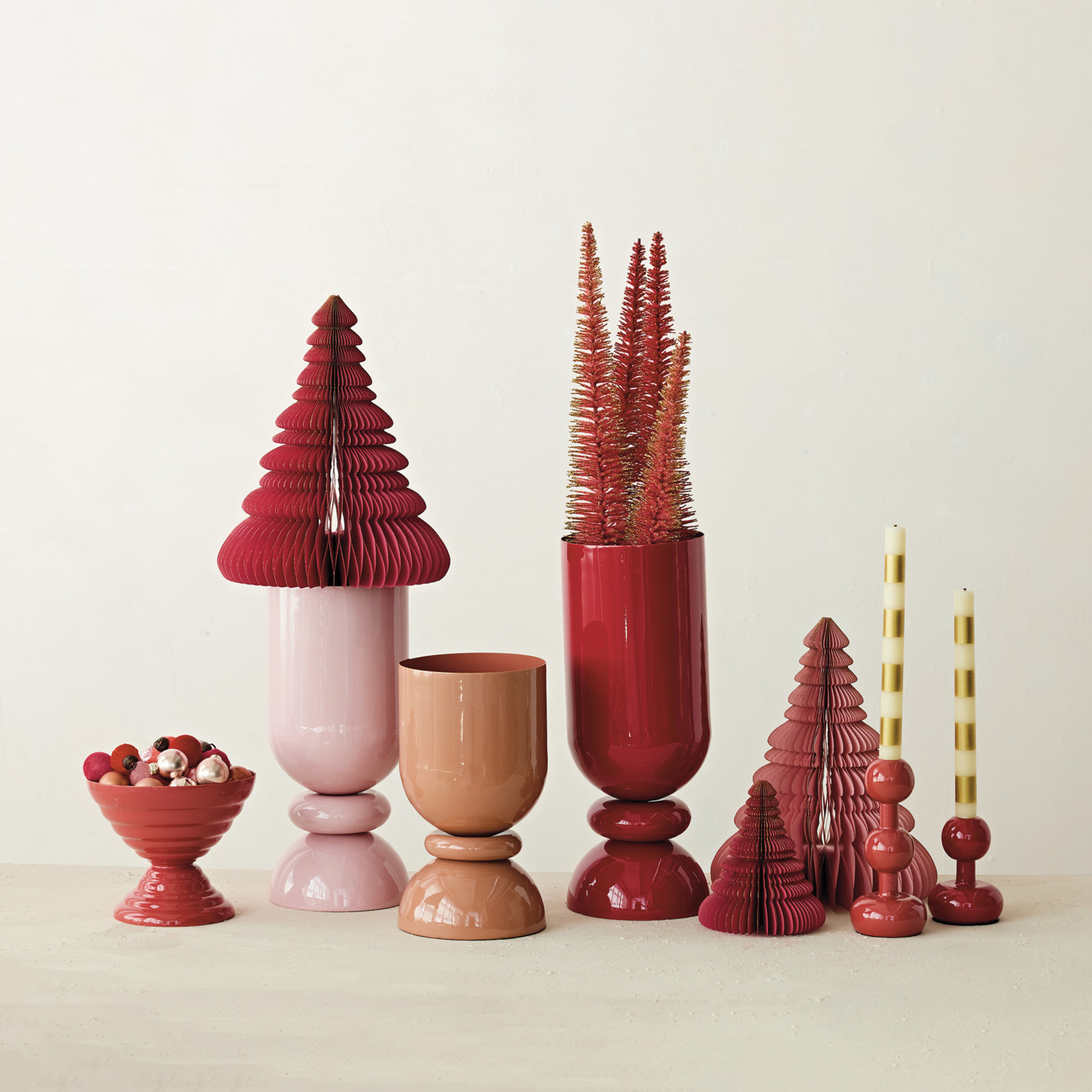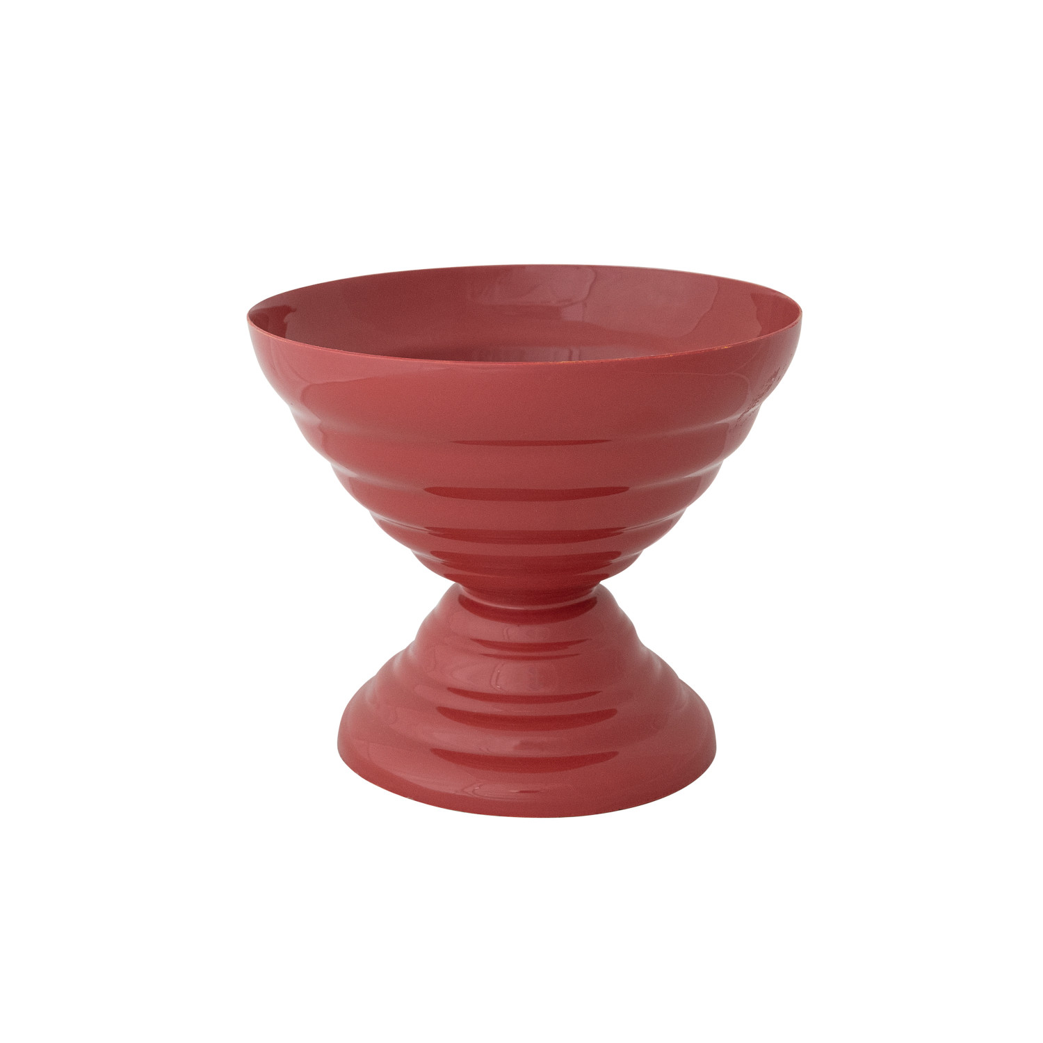 Catalog Name: 6-3/4" Round x 5-3/4"H Enameled Metal Ribbed Footed Bowl, Berry Color