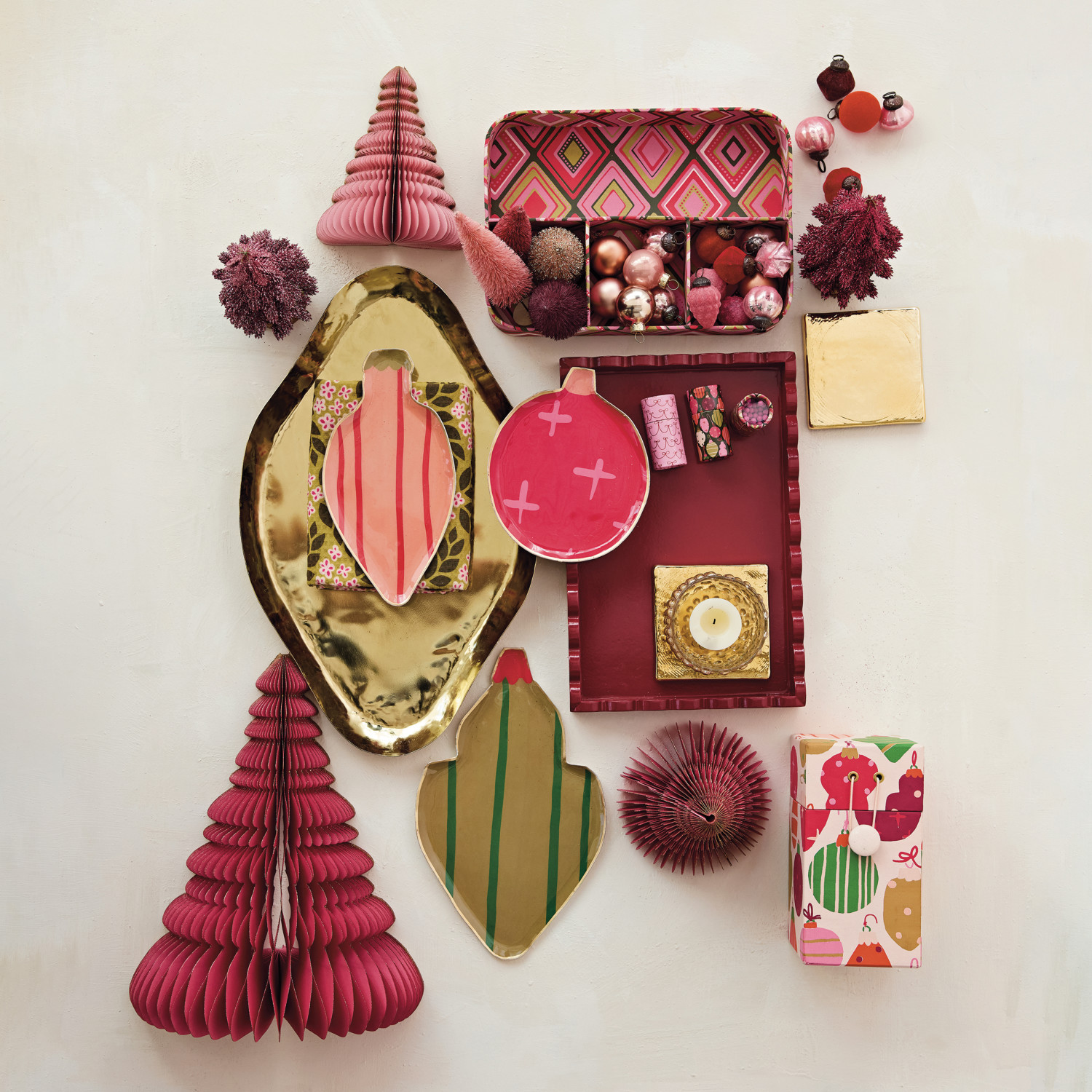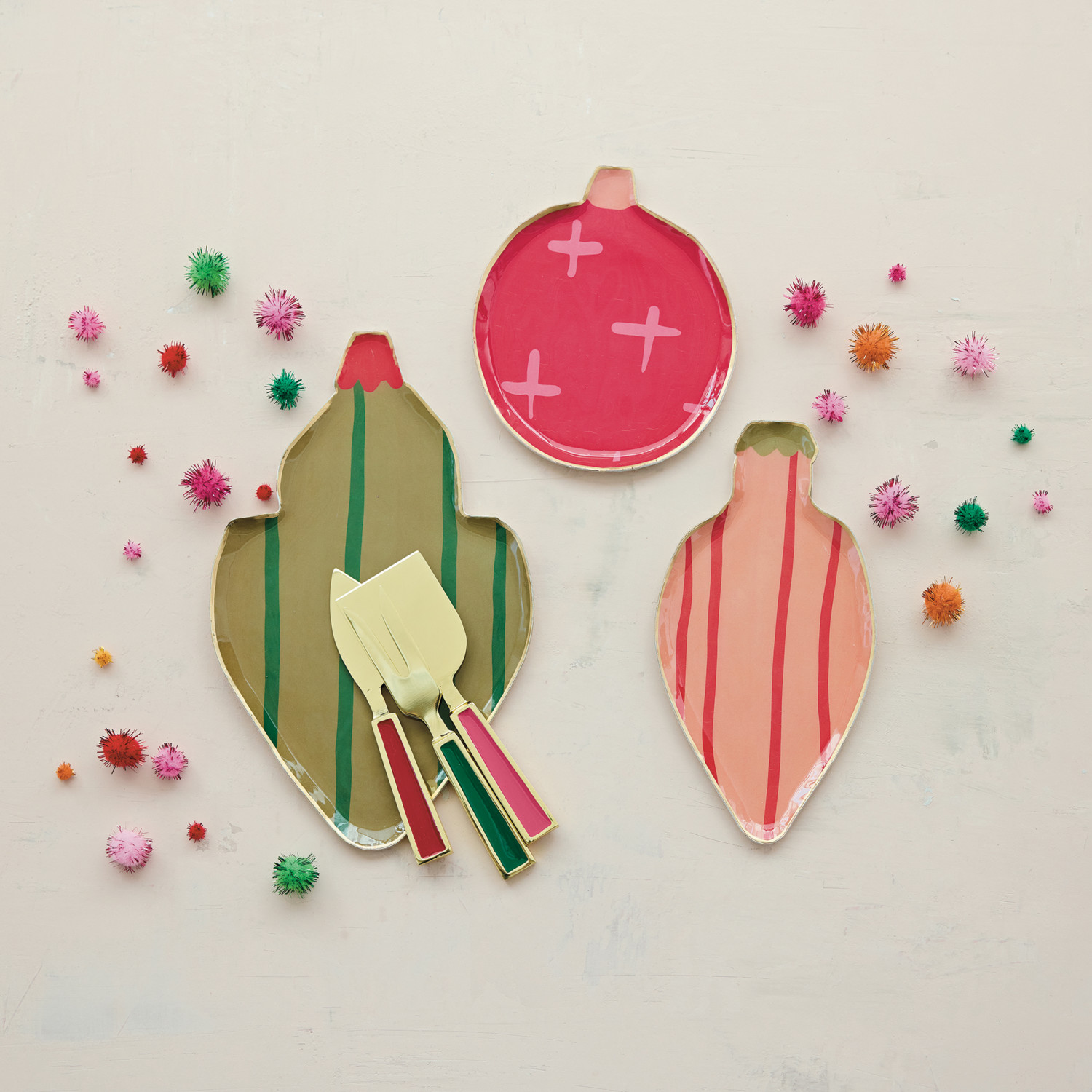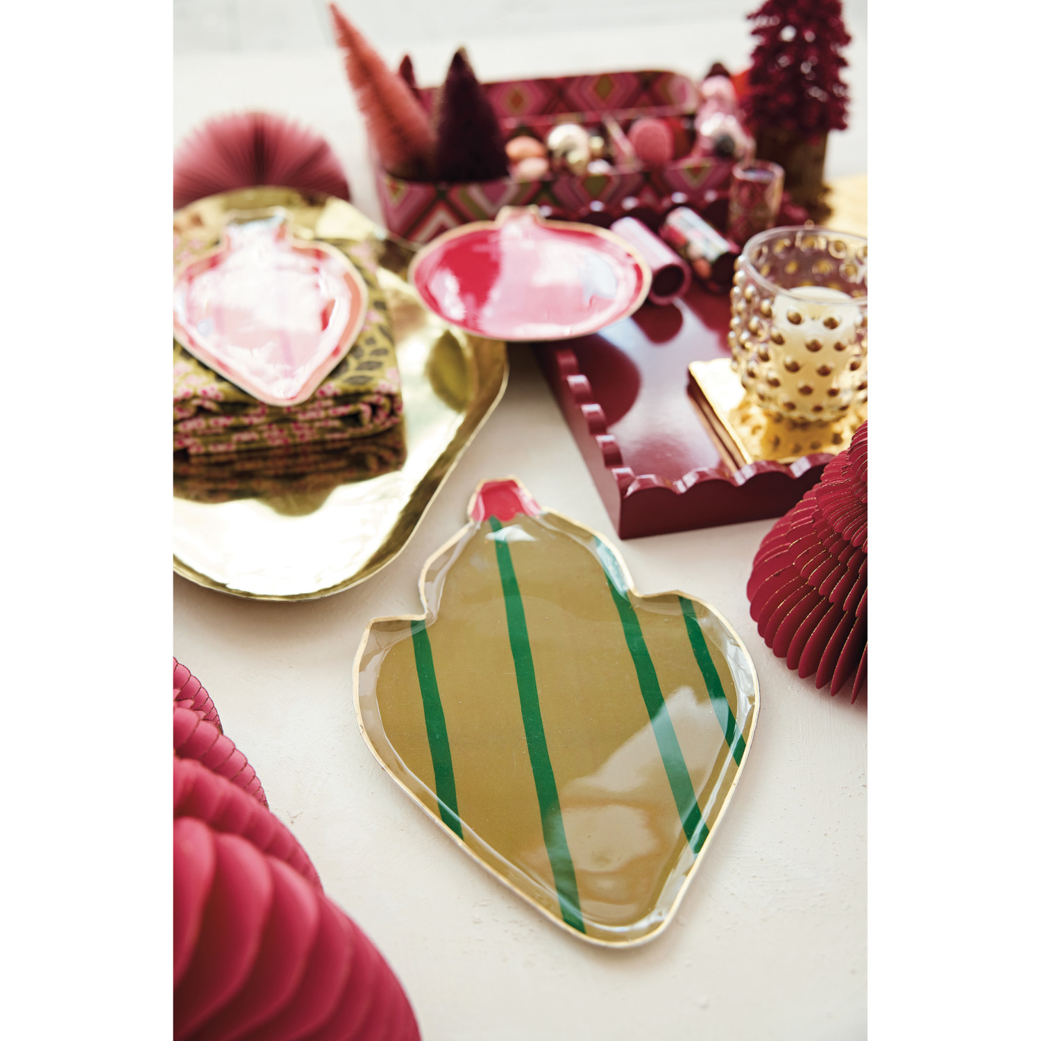 Catalog Name: 10-1/2"L x 6-1/4"W, 8-1/2"L x 4-1/4"W & 6-1/2"L x 5-1/4"W Enameled Metal Ornament Shaped Trays w/ Gold Edges, Multi Color, Set of 3 ©